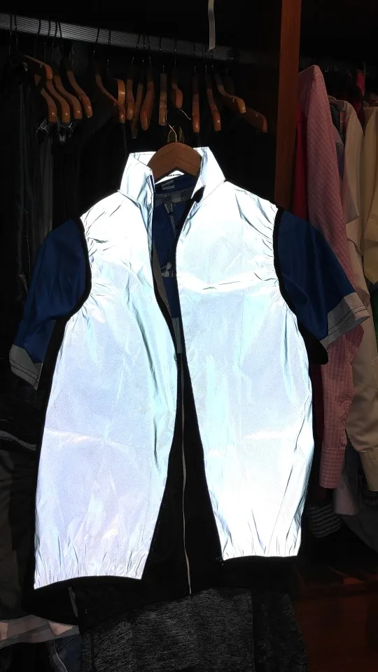 1. Легкая Светоотражающая ветрозащитная ткань2. Маленькая сетчатая ткань для придания пота3. Застежка-молния Ykk