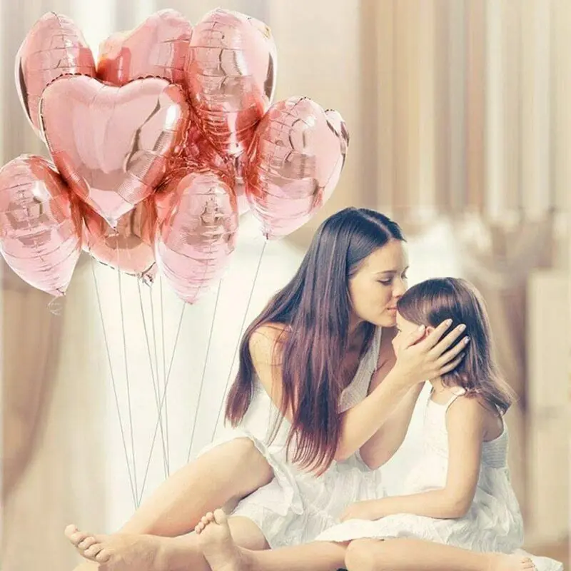 Шары воздушные розовые золотистые в форме сердца, 10 шт., фольгированные гелиевые шары