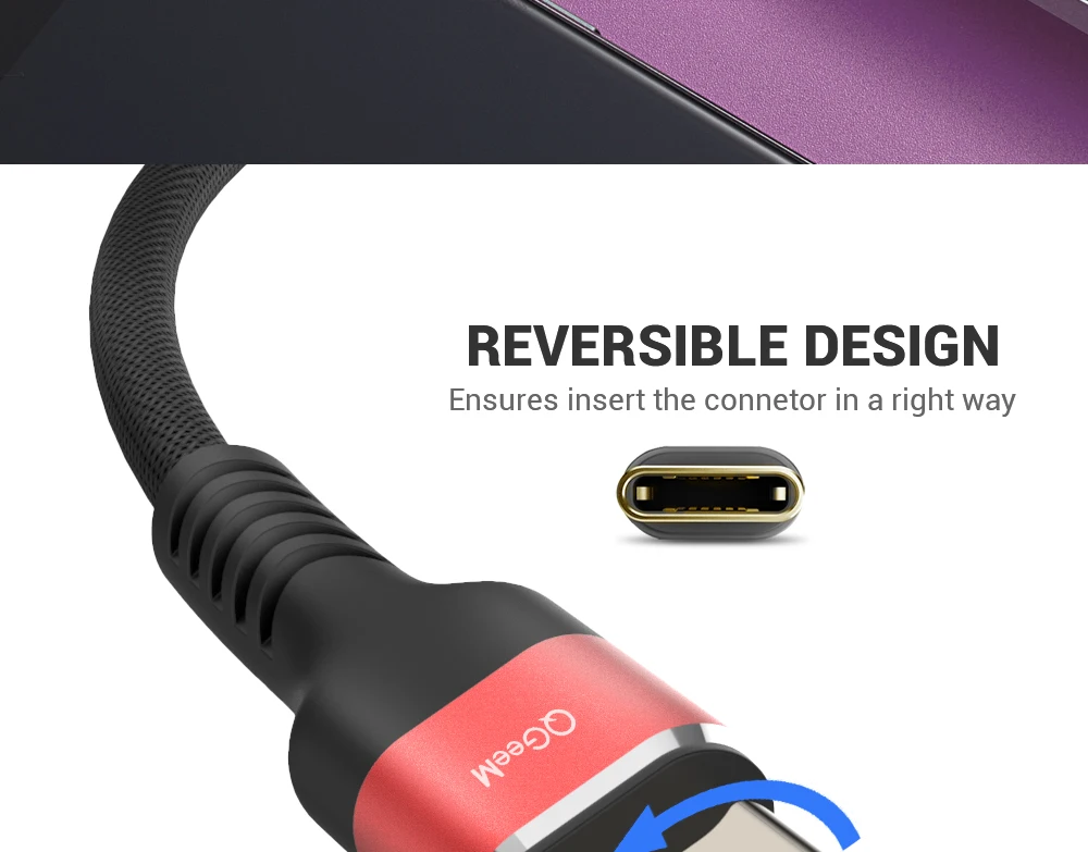 Кабель USB-C QGeeM, для Samsung Galaxy, S9, Huawei Mate 20, Xiaomi, с функцией быстрой зарядки
