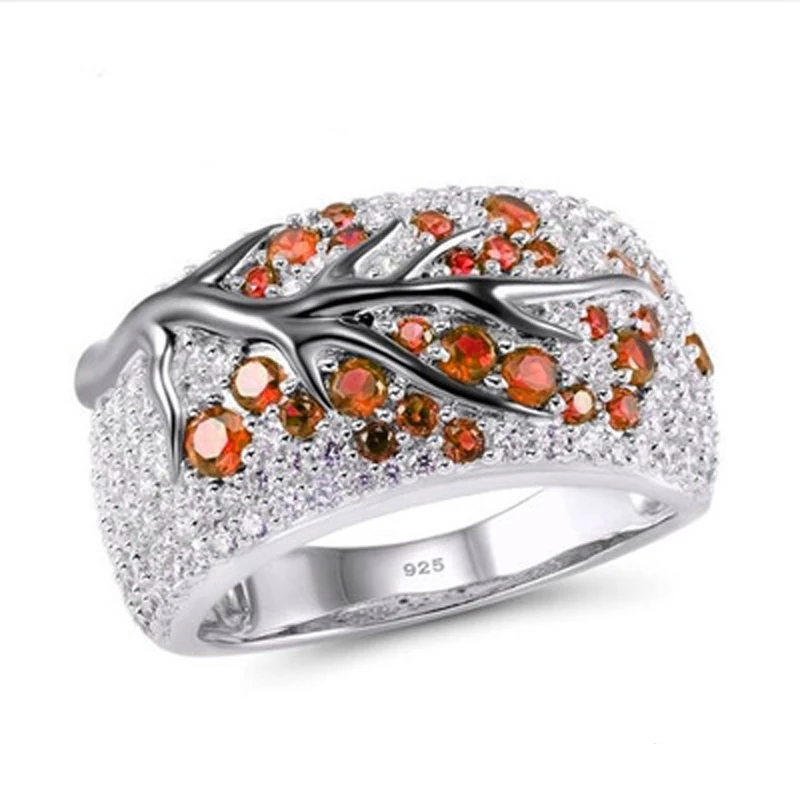 Номер моделиjz1039 Fashion rose red CZ Leaf Tree Women sterling silver jewelry