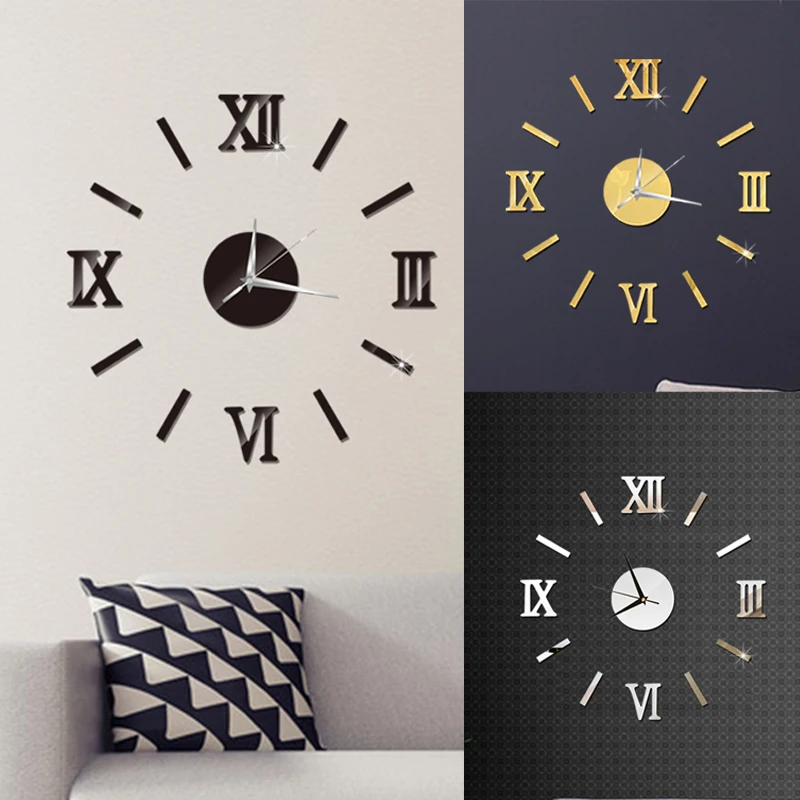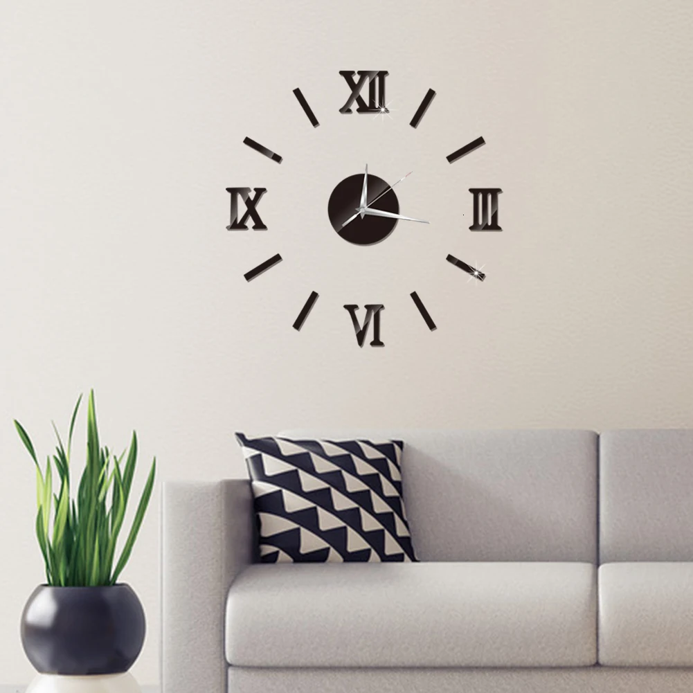Большие настенные часы, большие часы из плексигласа, Наклейка 3D, римские цифры, сделай сам, Настенный Современный домашний декор, наклейка на стену, украшение для дома