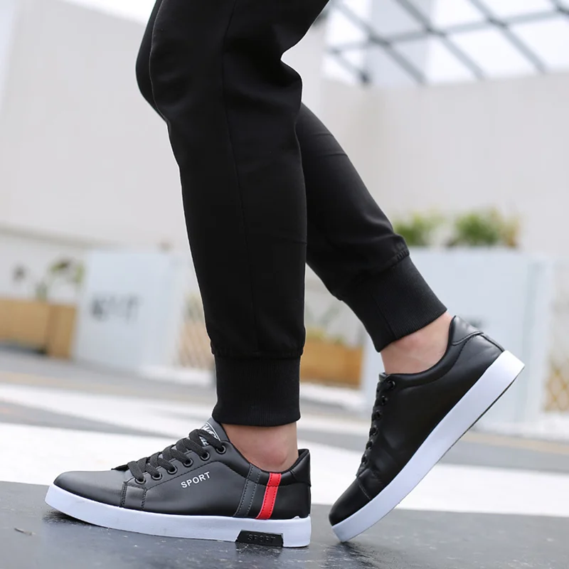 Мужские кроссовки из ПУ кожи, черные или белые кроссовки на плоской подошве, Повседневная Классическая обувь, новинка 2020