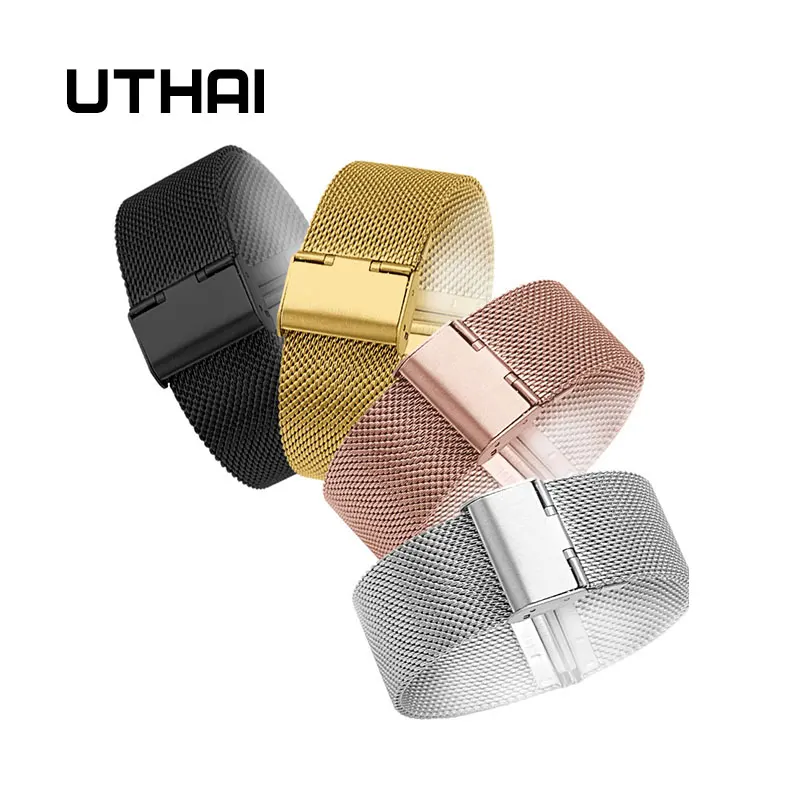 Универсальный ремешок Миланская петля UTHAI S02 0,6, сменный Браслет из нержавеющей стали серебристого цвета для наручных часов 20 мм 22 мм
