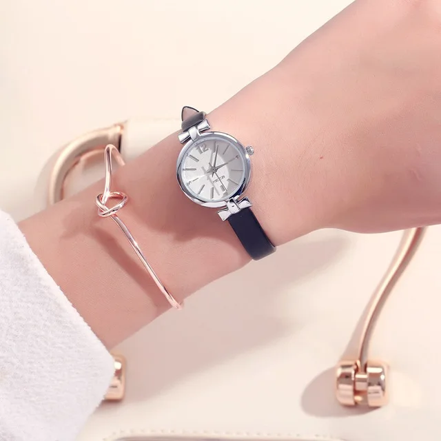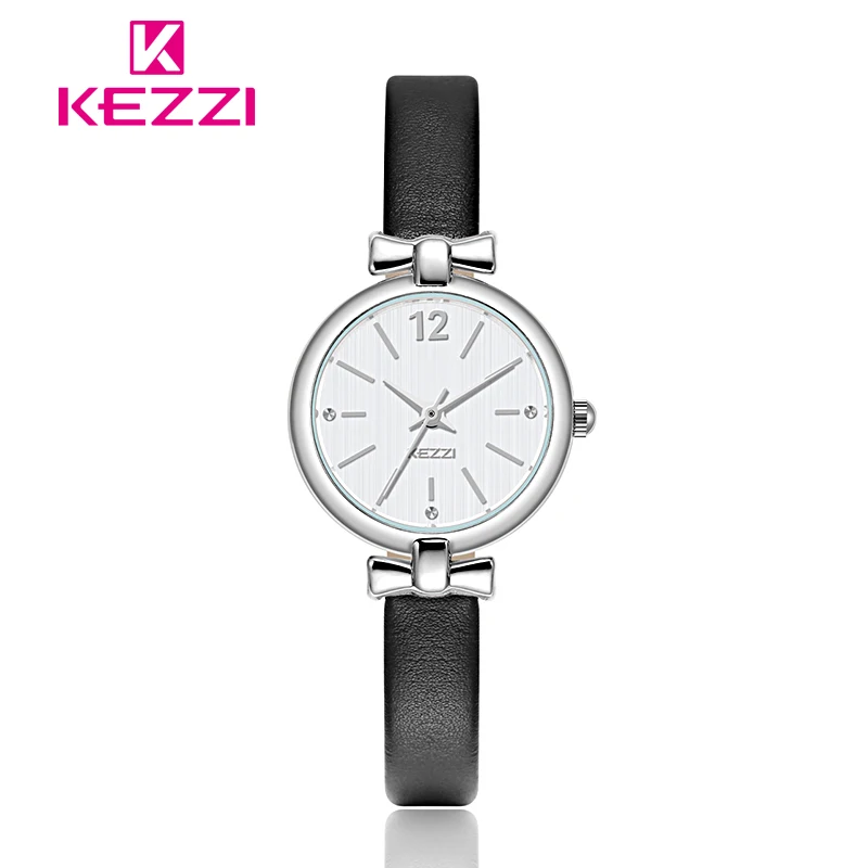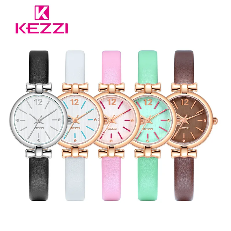 Женские кожаные кварцевые часы Kezzi, брендовые Модные Простые студенческие часы с маленьким циферблатом и бантом, женские часы для девочек
