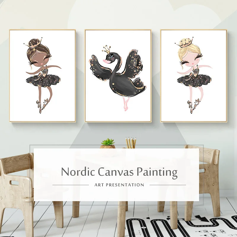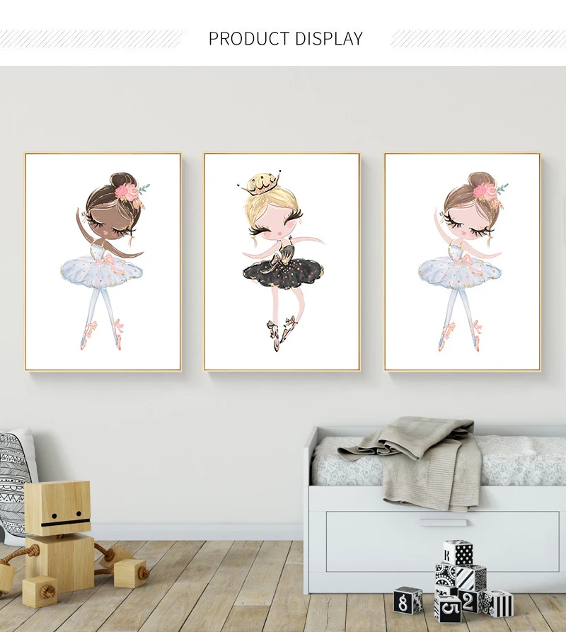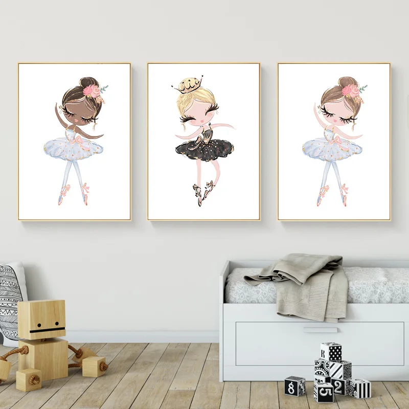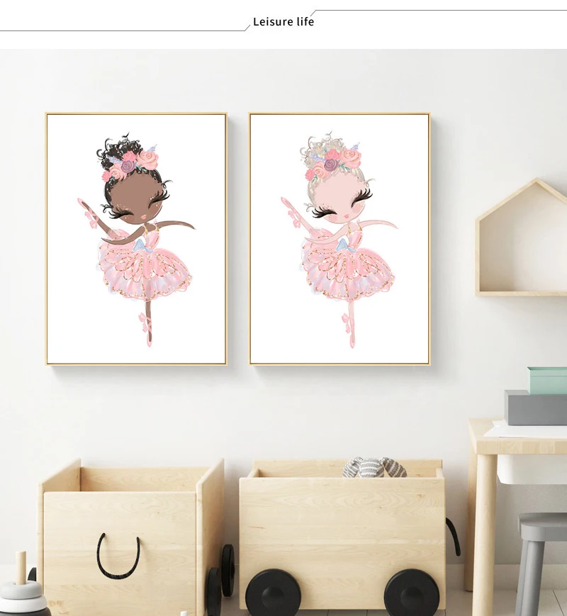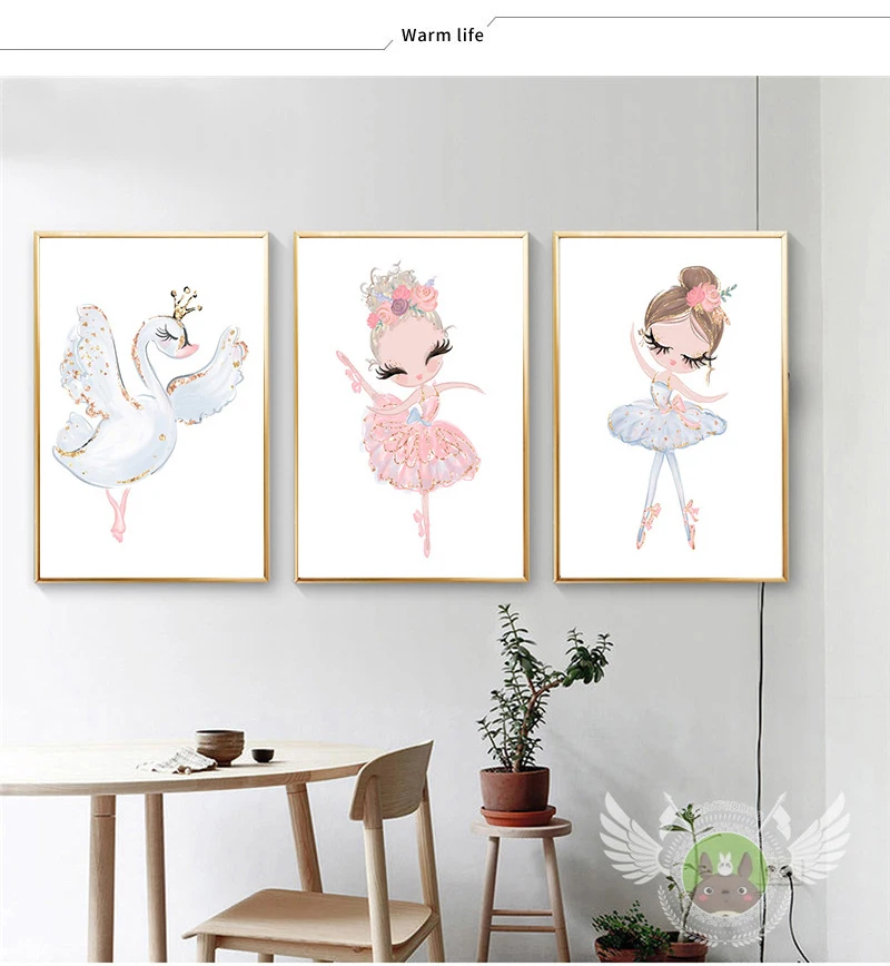 Милый мультфильм балетная танцевальная девушка картина милый домашний декор скандинавский Картина на холсте настенный художественный постер с розовым принтом для спальни девушки
