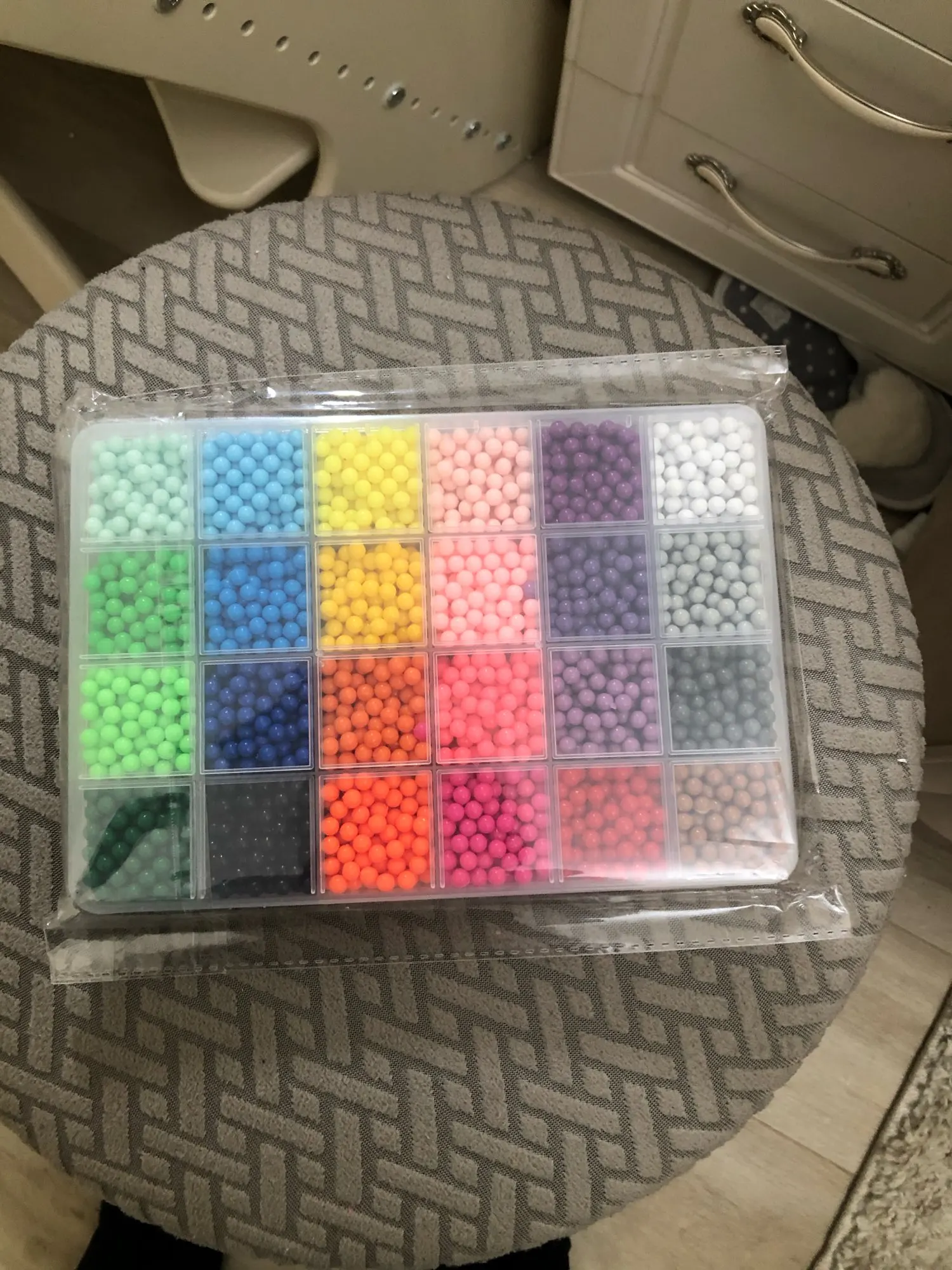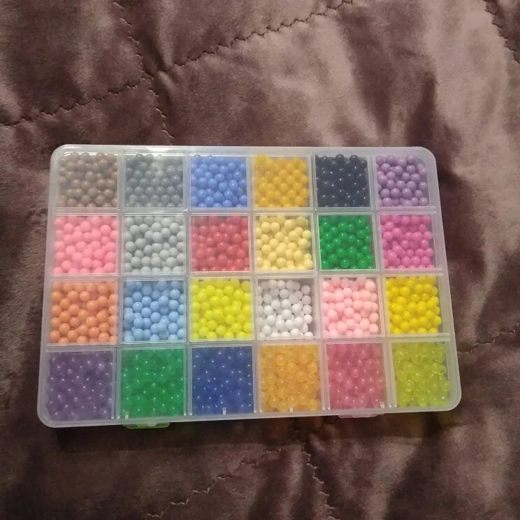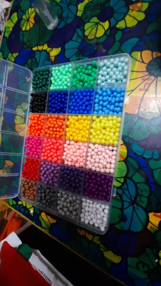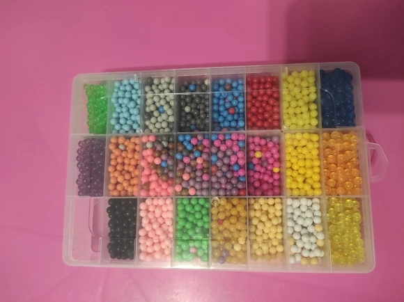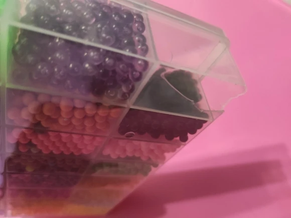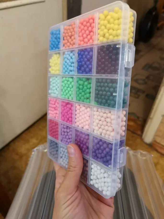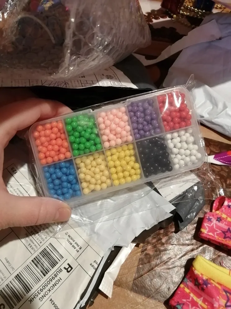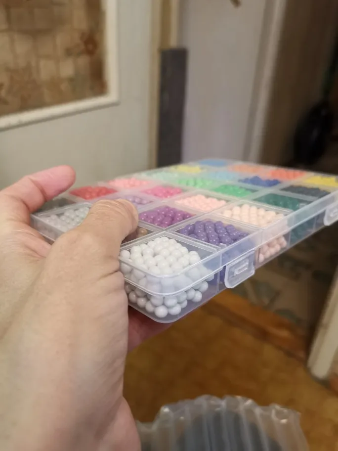 бусины отличные, клеятся хорошо, очень довольны качеством, спасибо огромное продавцу! Фото уже после использования части, а так все отсеки заполнены полностью