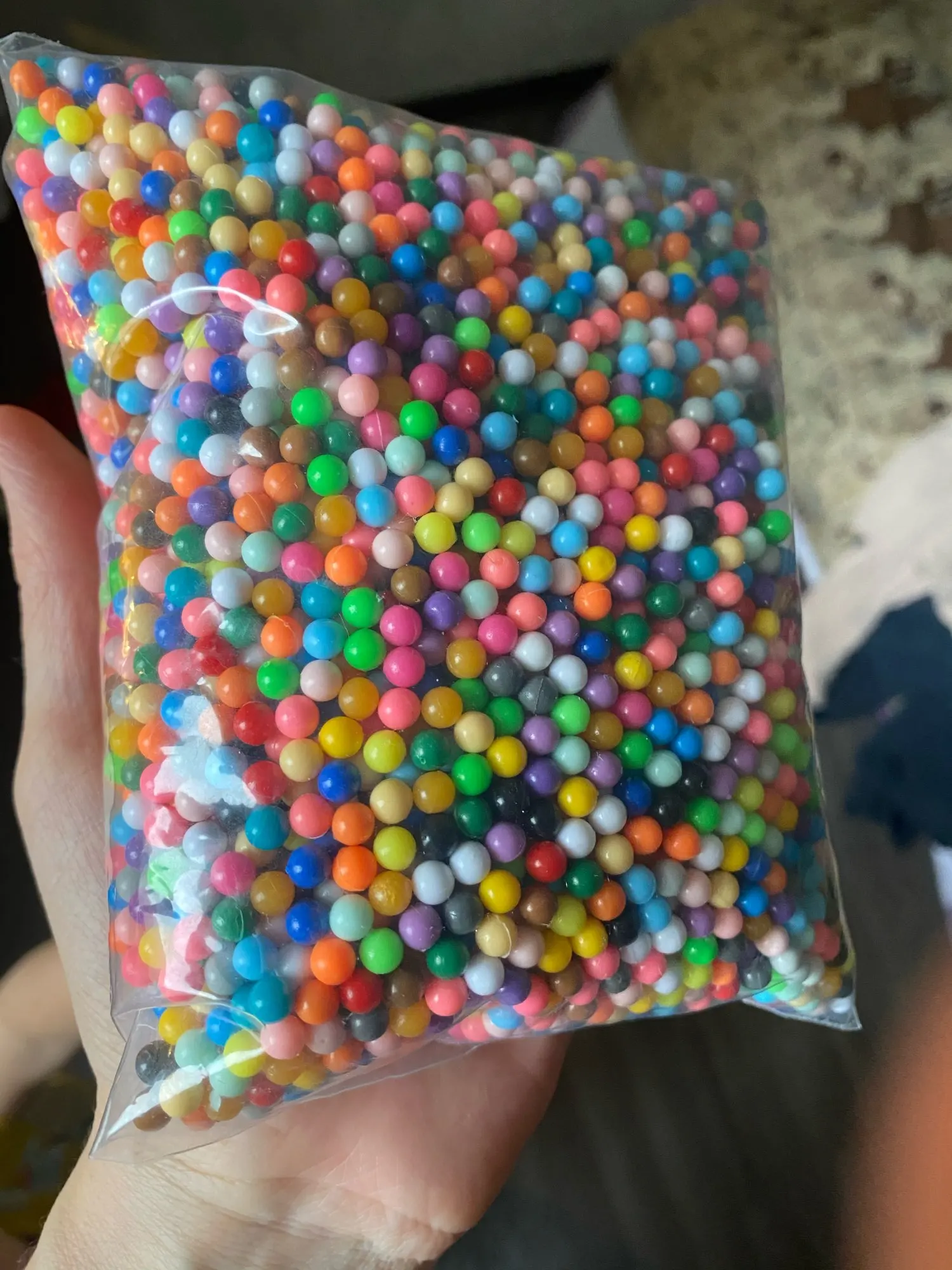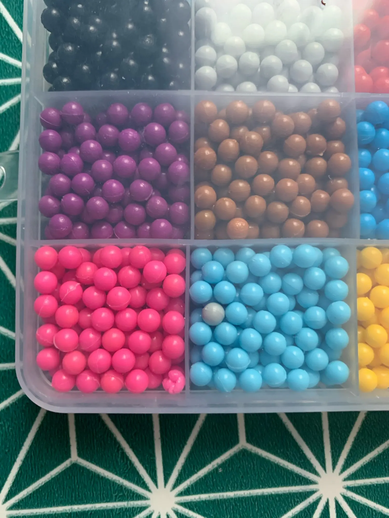какое шикарное развитие мелкой моторики при сортировке, не пожалела , что взяла смешанный вариант, за пару часов отсортировали по цветам , идеально для аквабидс, брака минимум, буквально неск штучек, рекомендую к покупке , сама с ребёнком залипаю , очень интересно собирать разнообразные фигурки, отправили быстро, получили тоже быстро ( СПб)