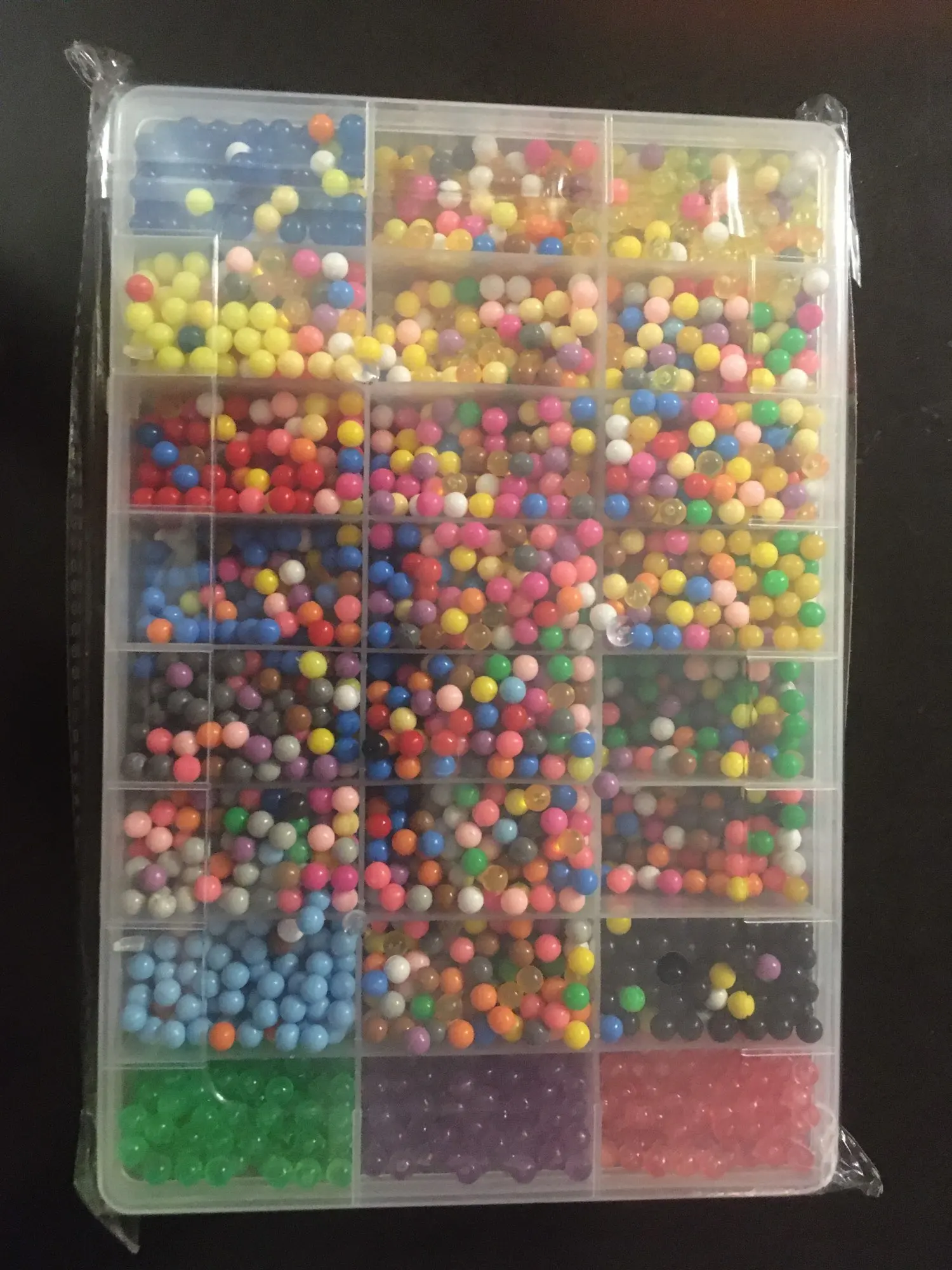Товар пришел очень быстро) Упаковано что надо,фото прилагаю) Контейнер хороший,все пришло в целостности и сохранности. Отличные шарики для аквабитс! ребенок счастлив)
