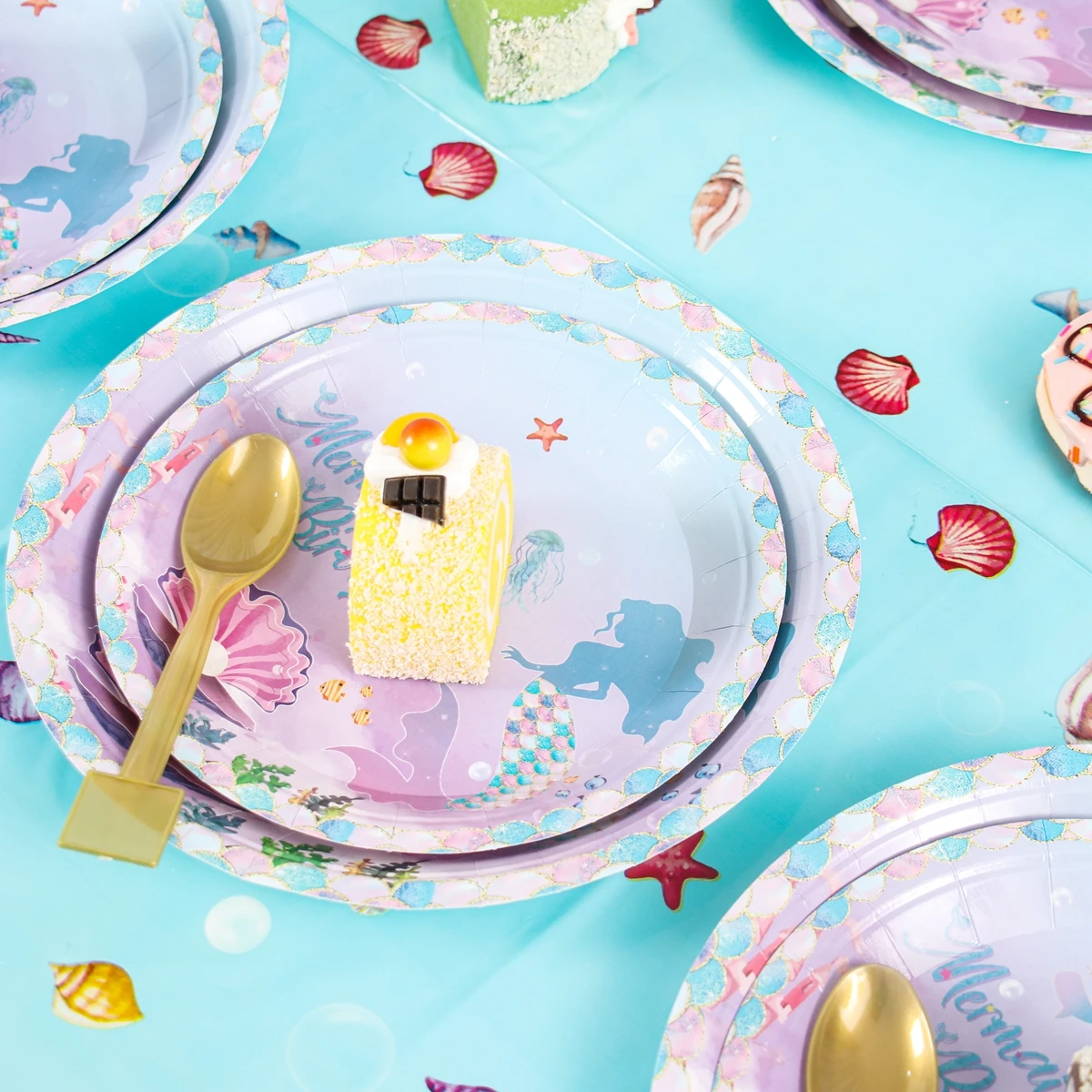 Украшение для темативечерние русалка, одноразовая посуда русалка для детей на первый день рождения, товары для вечерние ринки русалка