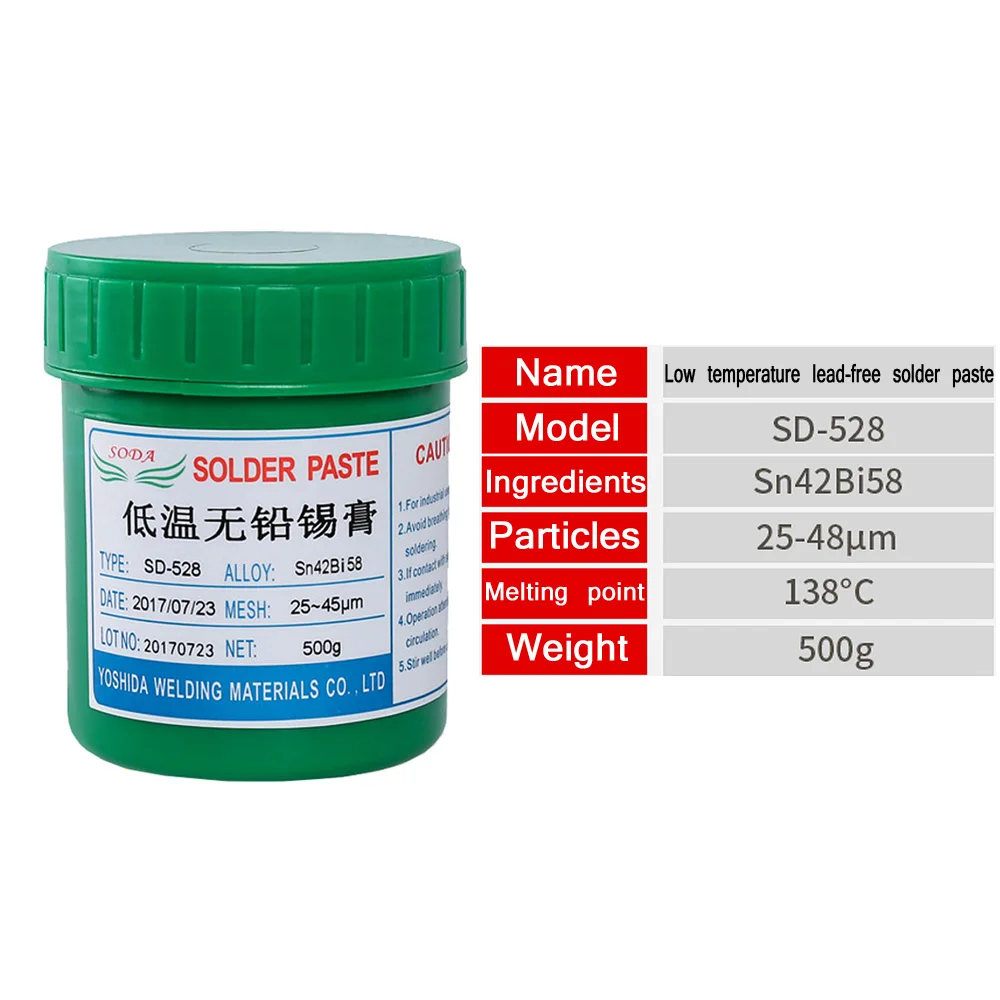 Низкотемпературная Бессвинцовая паяльная паста SD-528 200 г500 г, Высококачественная свежая низкотемпературная паяльная паста BGA для SN42 BI58 SMT