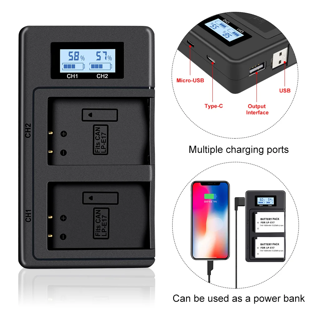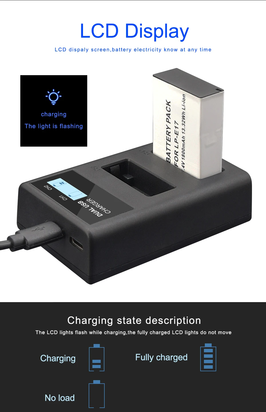 PALO LP-E17 LPE17 USB LCD двойное зарядное устройство для Canon EOS...
