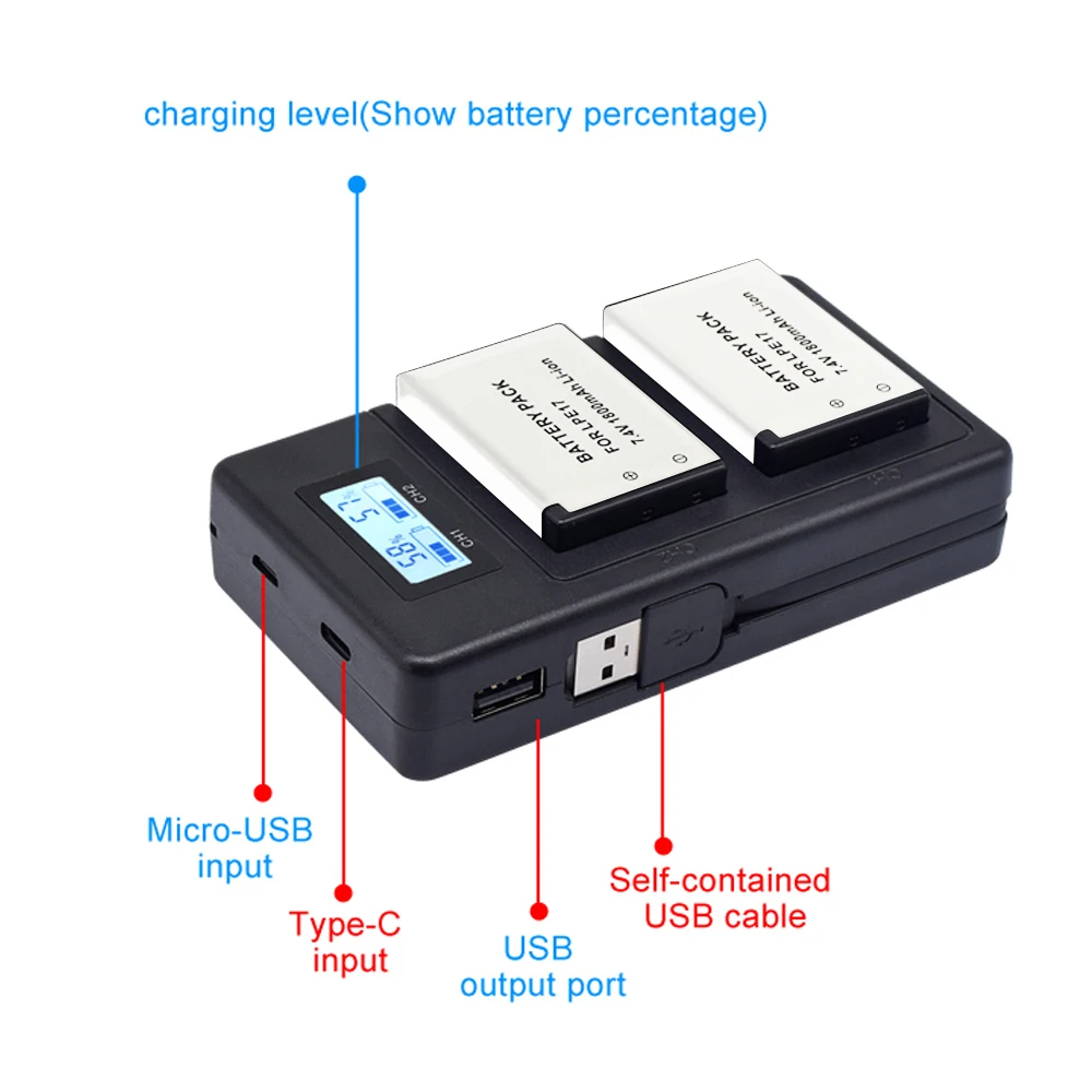 Зарядное устройство с двумя USB-портами и ЖК-дисплеем для камеры Ca...