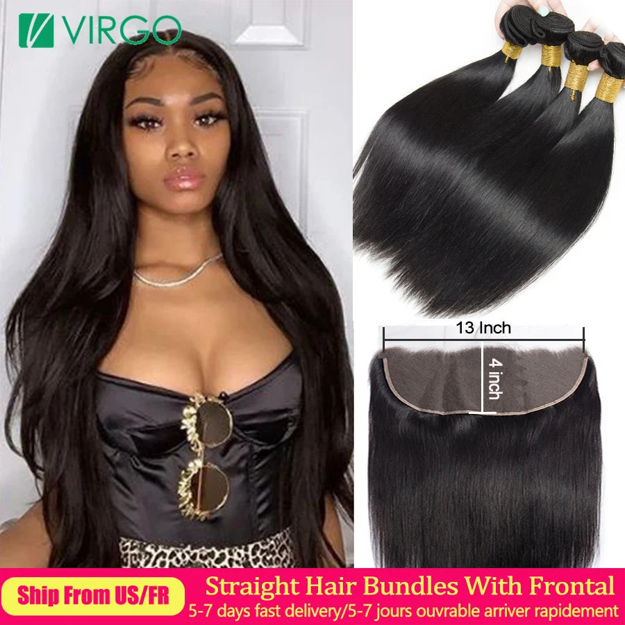 30-дюймовые перуанские прямые пучки волос с застежкой, прямые пряди Девы с фронтальным неповрежденным наращиванием волос, человеческие пучки волос