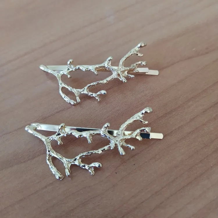 Заколки для волос женские, винтажные, золотистые, серебристые, в форме дерева, из сплава