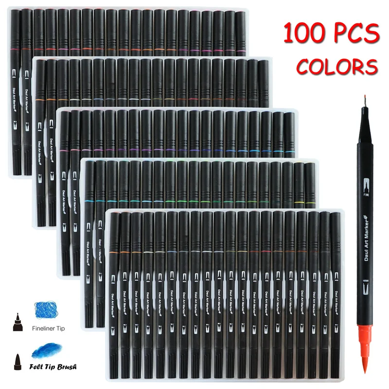 100 шт., маркеры для рисования, кисти и подводки, акварельные ручки для рисования, для раскрашивания манги, канцелярские принадлежности для каллиграфии