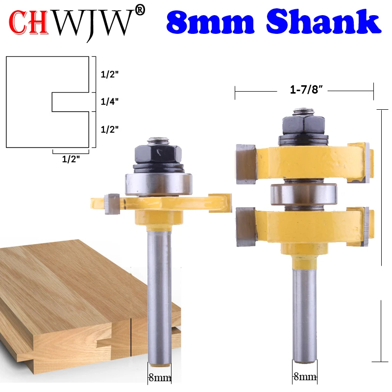 2 шт. 8 мм хвостовик, высокое качество, большой Язык и паз, сборка, набор фрез 1-14 ", в наличии, инструмент для резки древесины-CHWJW