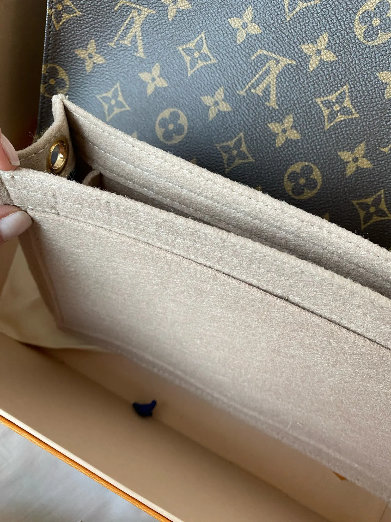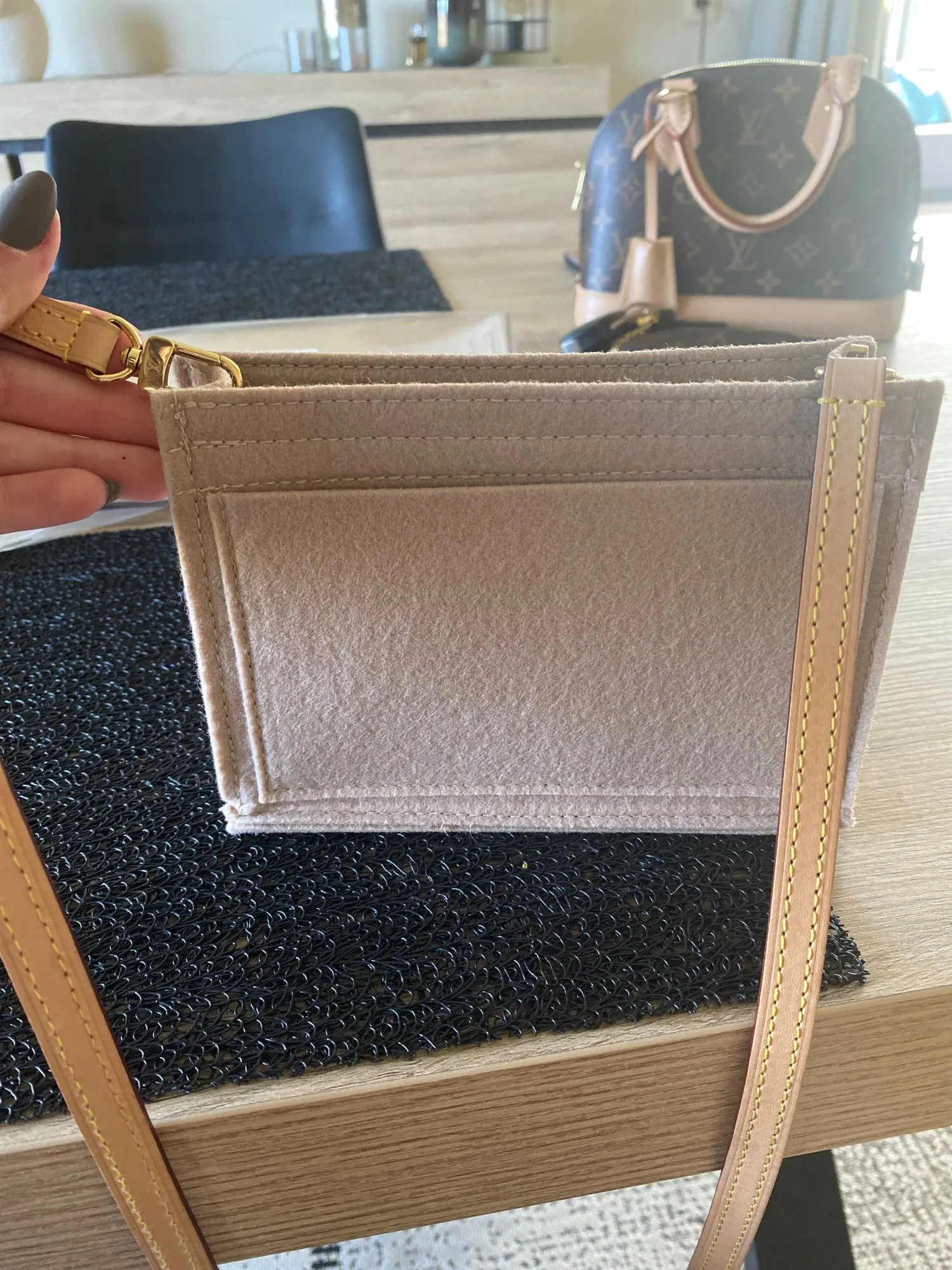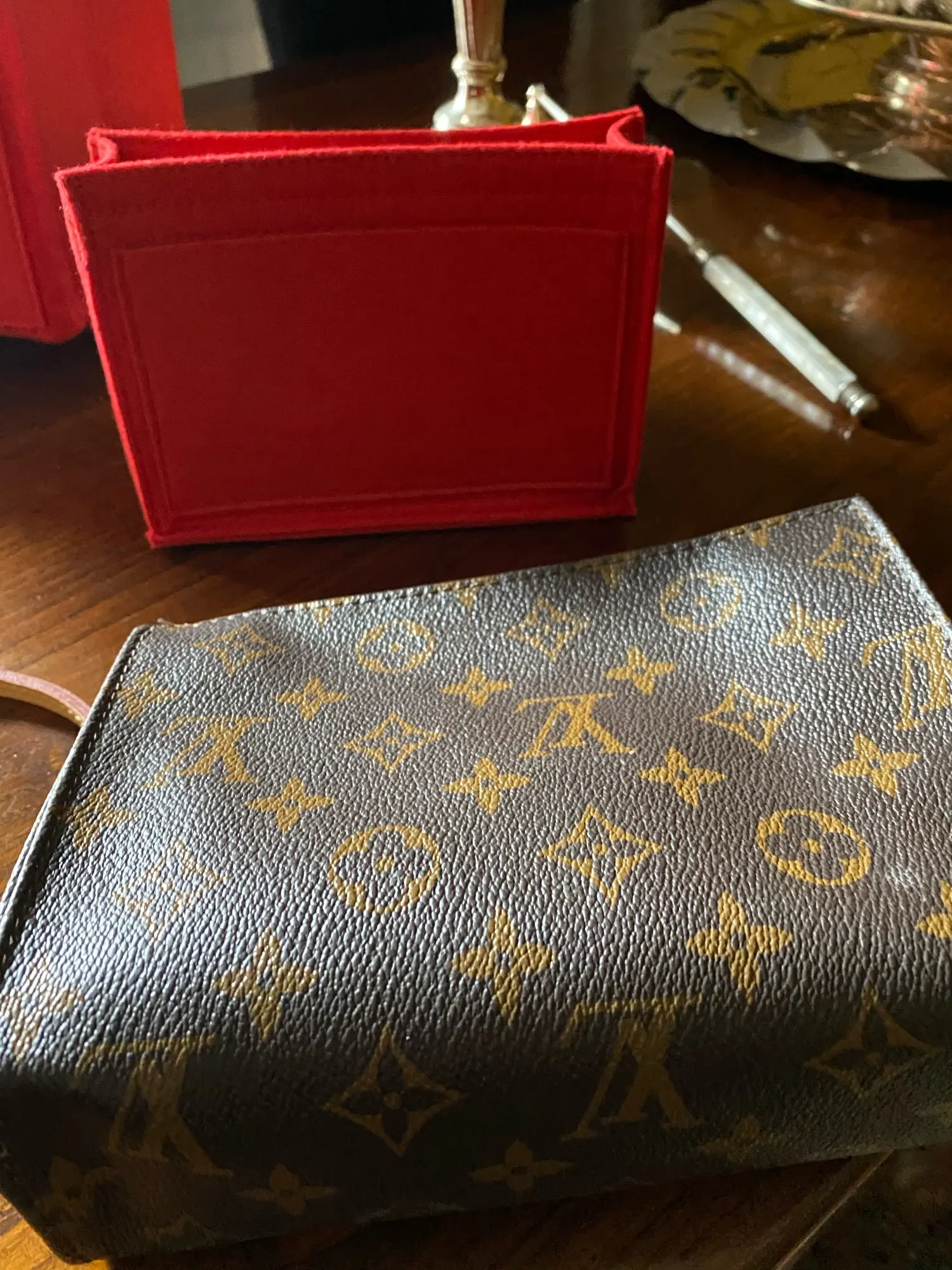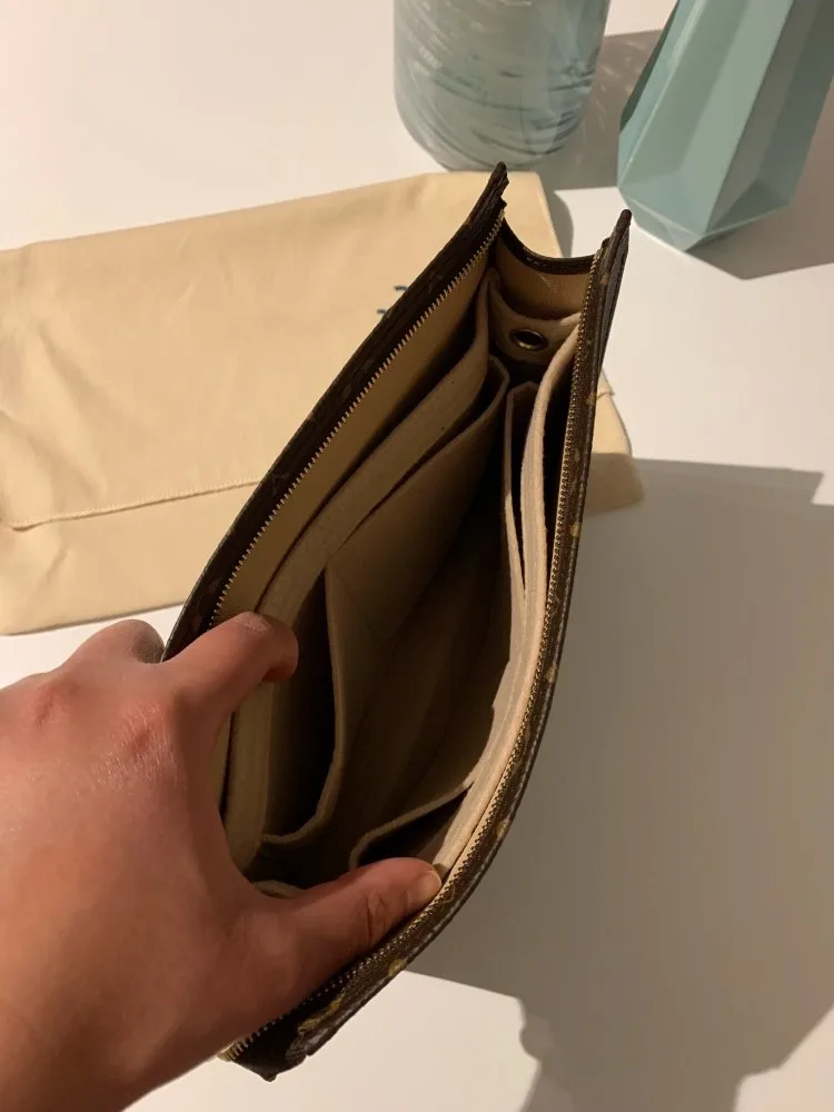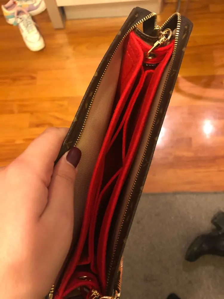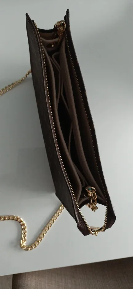 Качество соответствует описанию и плотно помещается в мой мешочек LV. Плотный и крепкий войлок, и я могу прикрепить цепочку, чтобы превратить ее в Кроссбоди. Также прибыл неожиданно быстро в Toronto, Канада, в течение 2 недель после того, как я заказал его, так что это большой бонус.