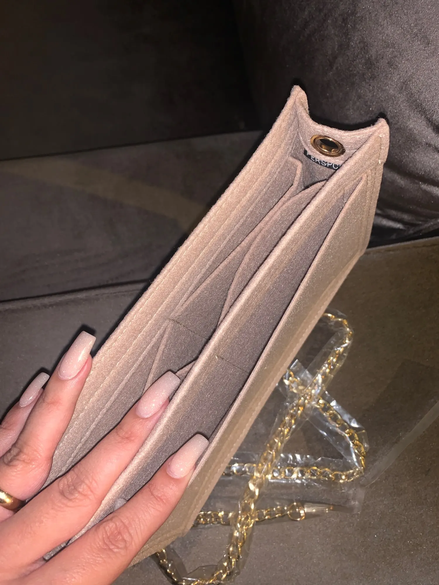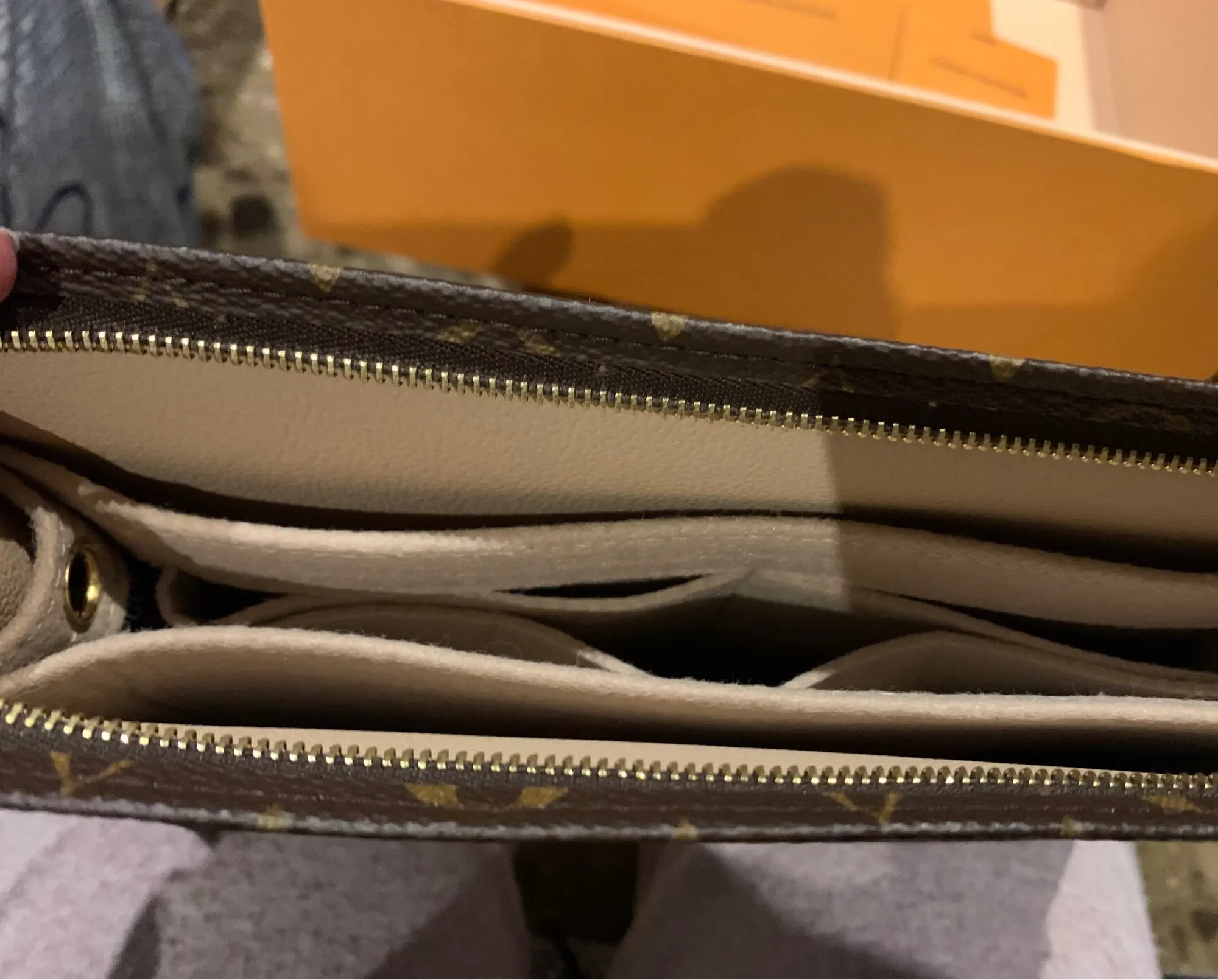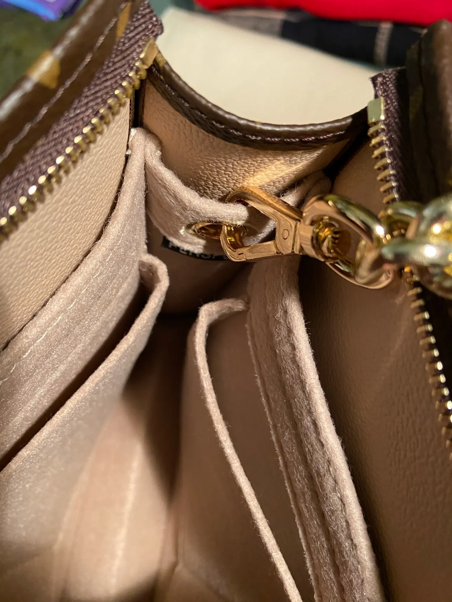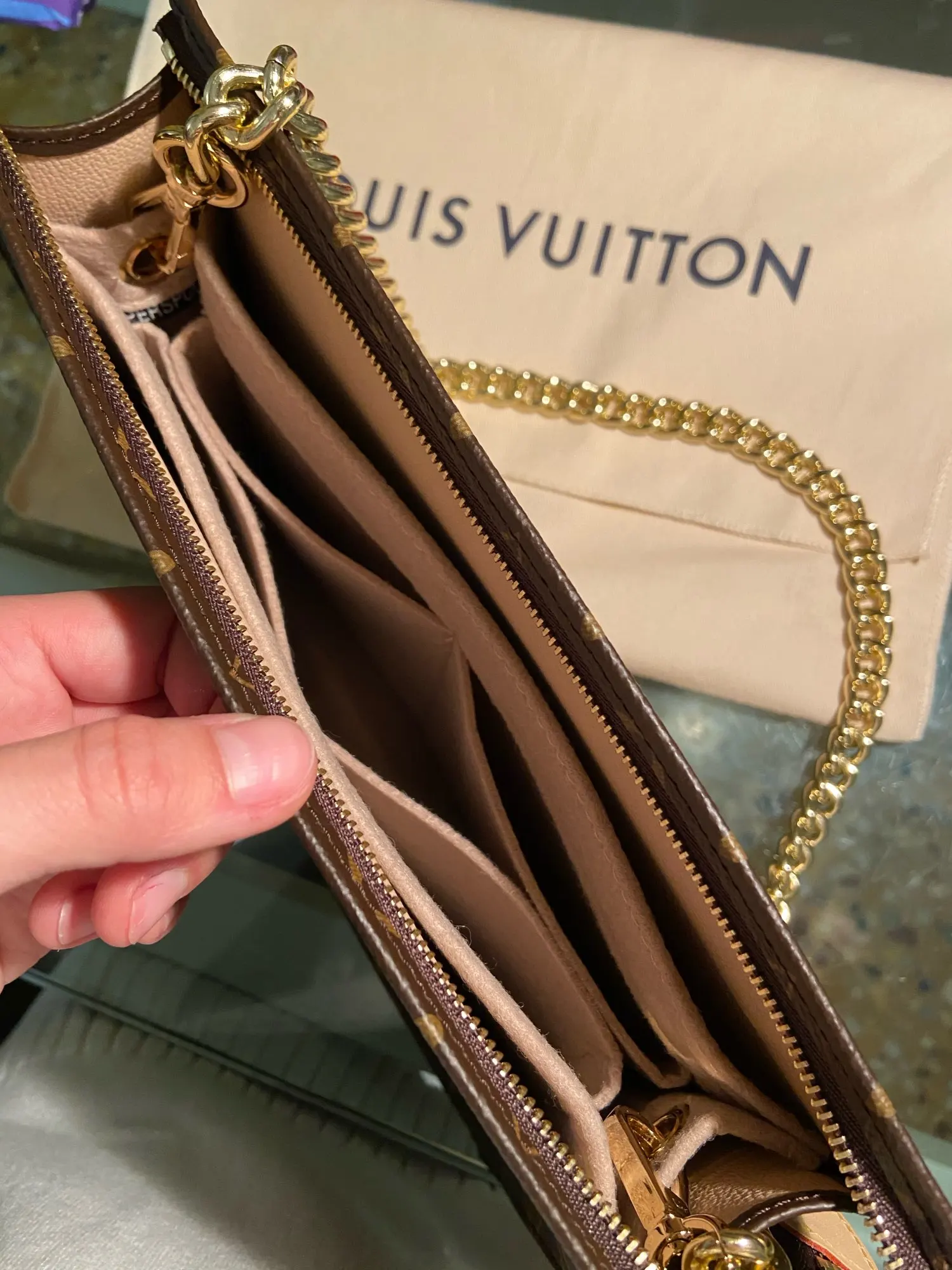 Качество соответствует описанию и плотно помещается в мой мешочек LV. Плотный и крепкий войлок, и я могу прикрепить цепочку, чтобы превратить ее в Кроссбоди. Также прибыл неожиданно быстро в Toronto, Канада, в течение 2 недель после того, как я заказал его, так что это большой бонус.