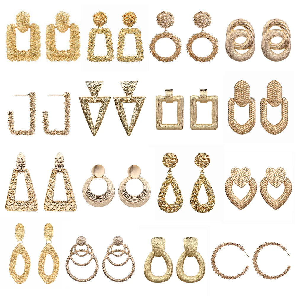 Женские винтажные серьги-капельки золотистого/серебристого цвета, большие геометрические массивные серьги, модные серьги, индийские ювелирные изделия, 2019