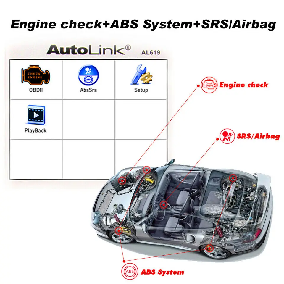 Диагностический сканер Autel Autolink AL619, автомобильный многоязычный сканер OBD2 для диагностики двигателя, ABS,SRS