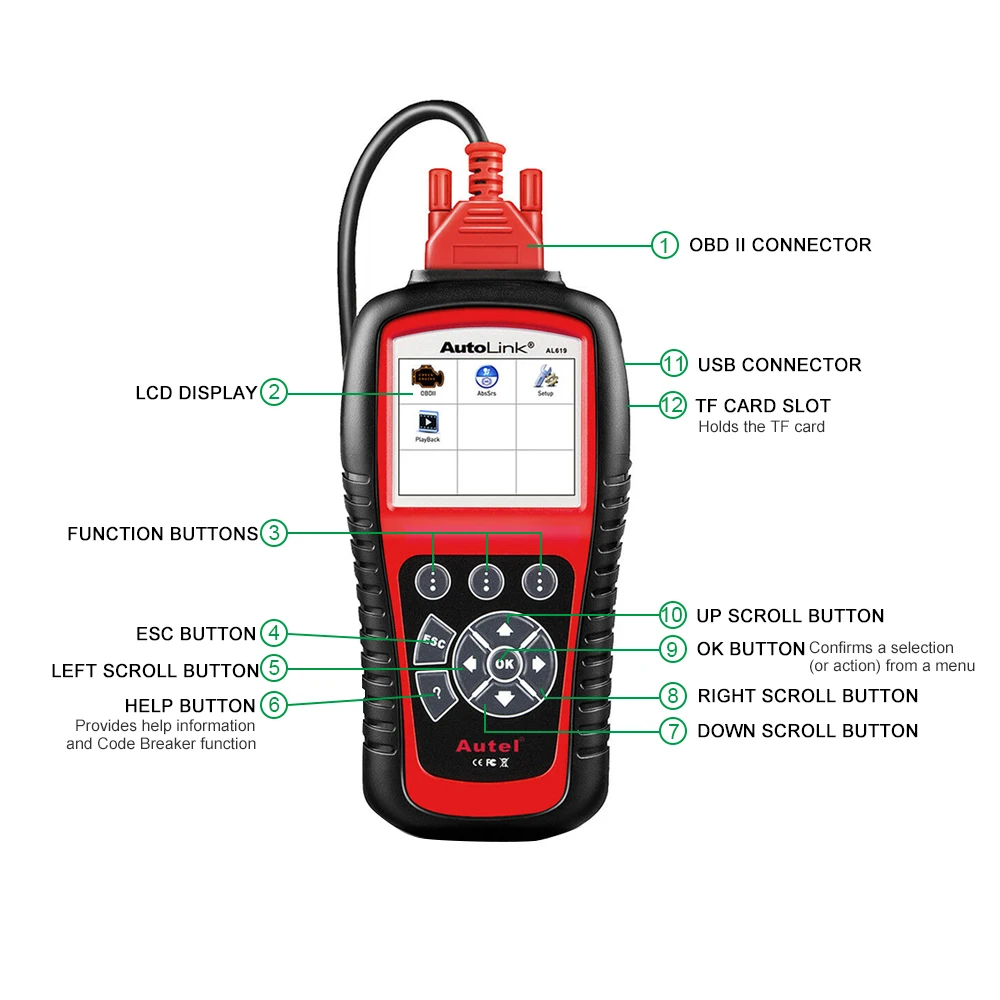 AL619 полная функция OBD2 для OBD2 протоколов автомобилей:
