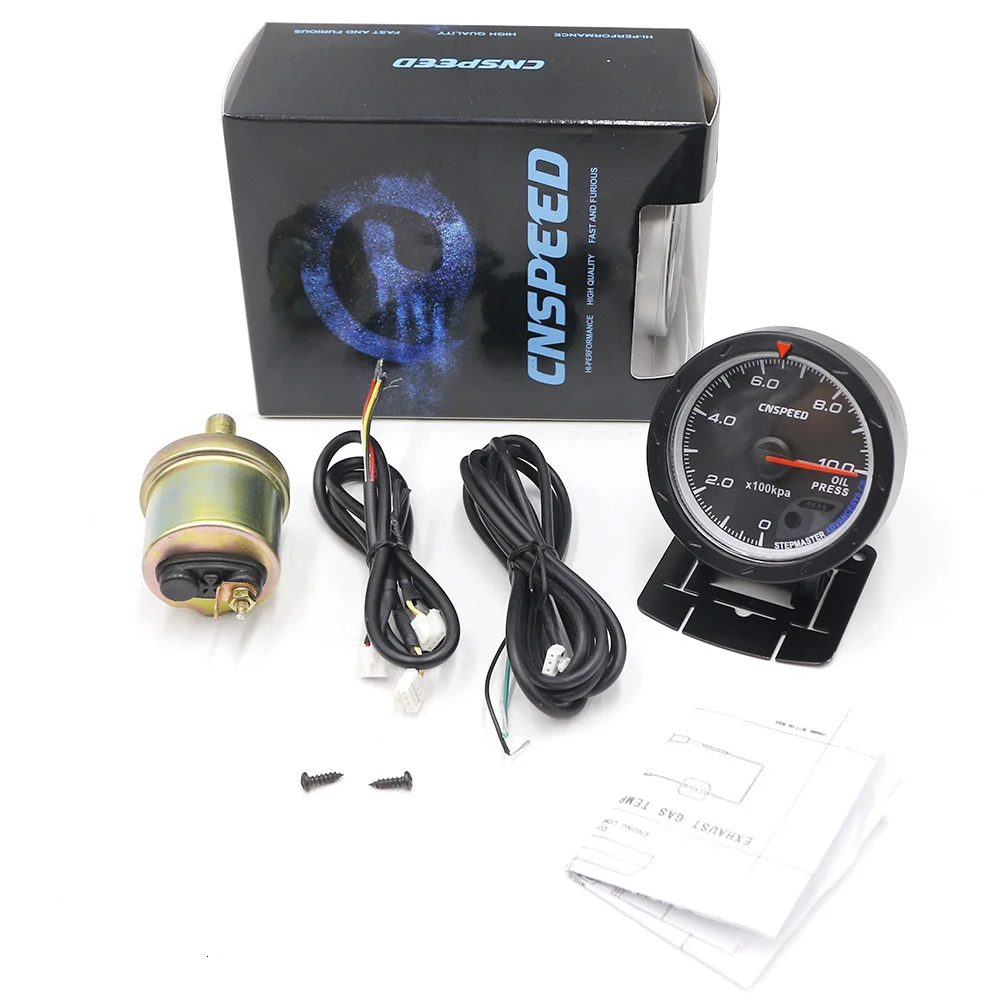 CNSPEED 60 мм Автомобильный манометр давления масла 0-10 бар с сенсором красное и белое освещение автомобильный счетчик с масляным фильтром адаптер для сэндвич-пластин