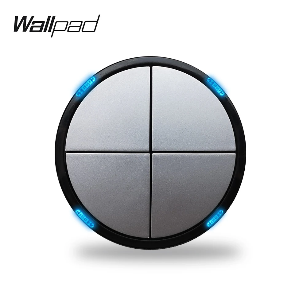 Wallpad L6 4 Gang 2 Way модульная черный пуш-ап Кнопка возврата светодиодный настенный выключатель света собственными руками Сделай Сам Бесплатная Комбинации синий светодиодный индикатор