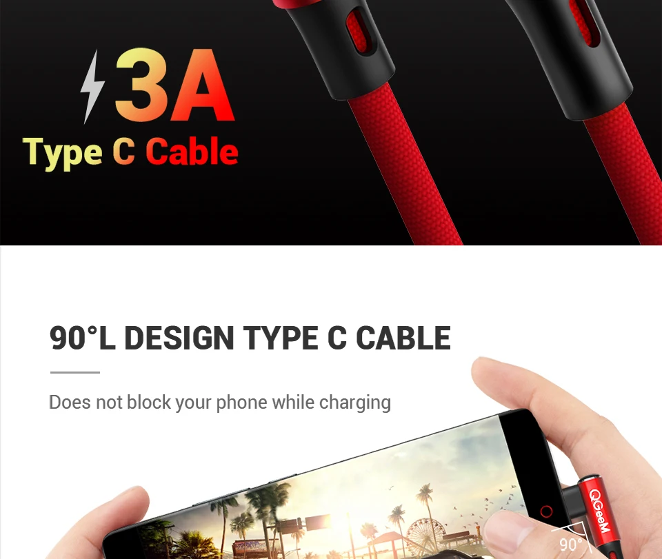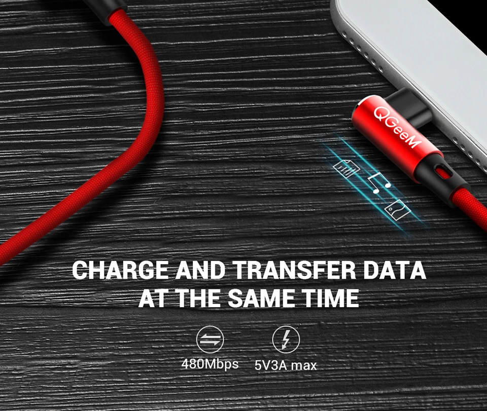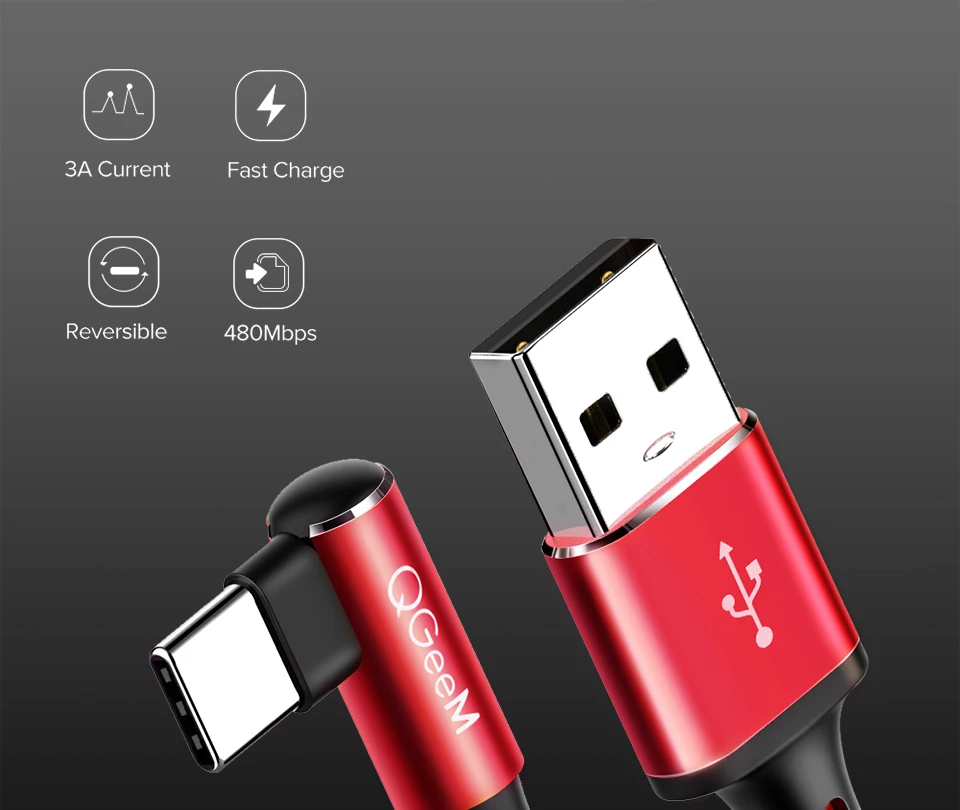 Кабель USB-C 3.0 QGeeM, быстрая зарядка для Samsung Note 8, S8, Xiaomi Mi A1