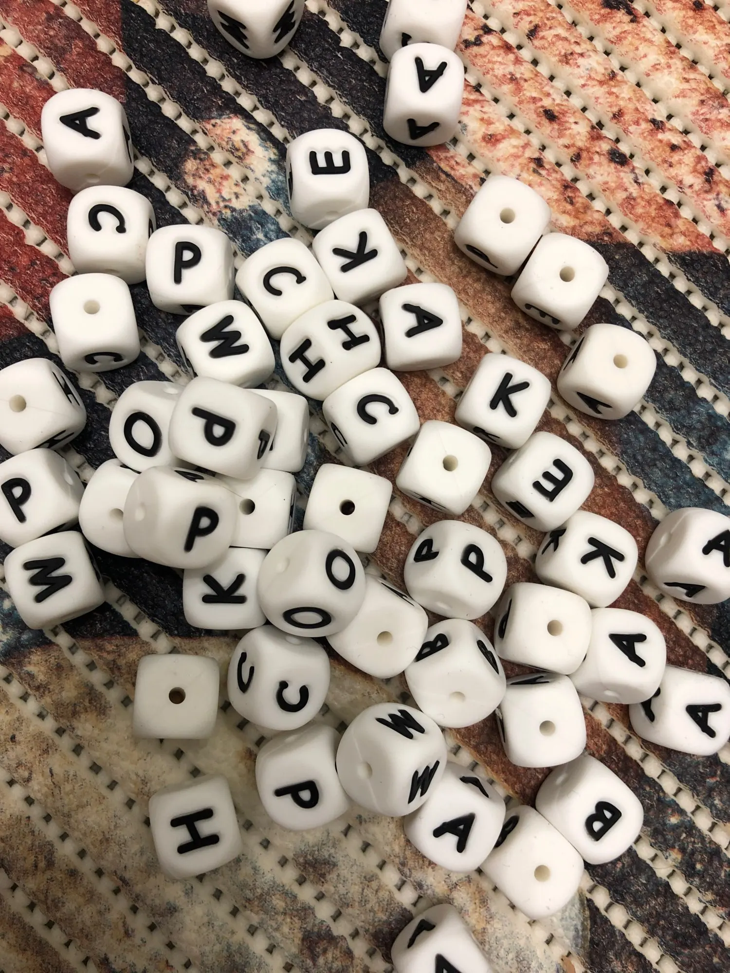10 шт. 12 мм Силиконовые Бусины с буквенным принтом английские бусины с буквенным принтом пищевые силиконовые жевательные бусины DIY Детские Прорезыватели игрушки Соска-подвеска