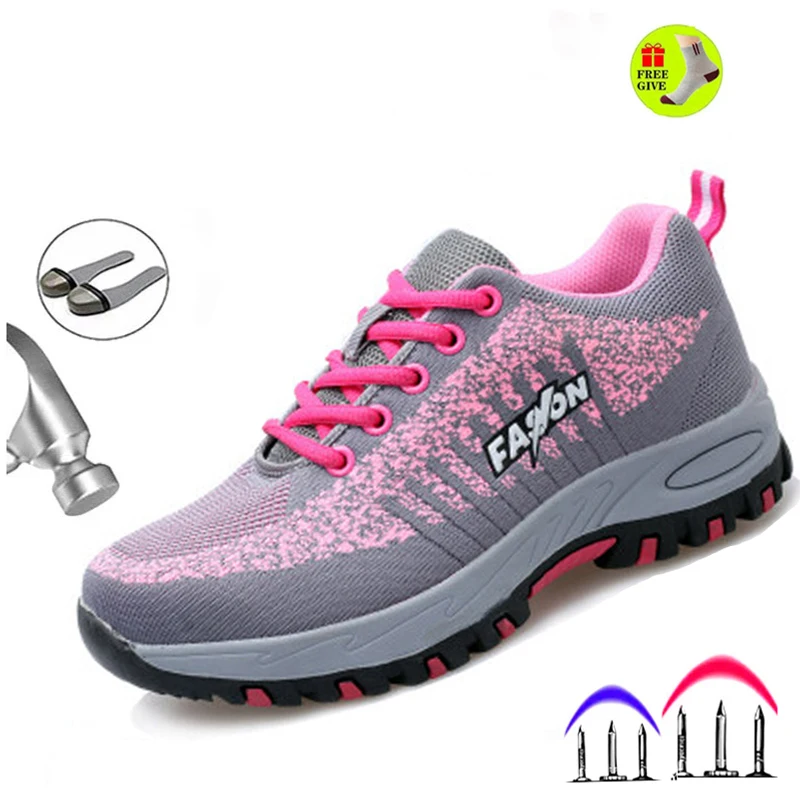 Женские рабочие ботинки из сетчатого материала со стальным носком; Легкая дышащая Нескользящая защитная обувь; Размеры 40