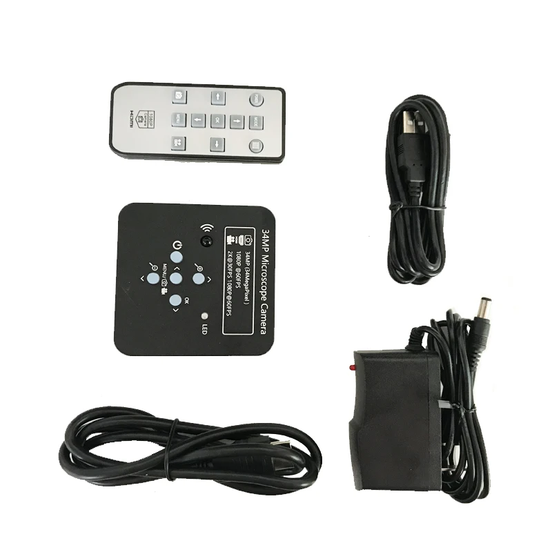 1 х 34 Мп микроскоп Камера 1 x блок питания 1 x USB-кабель 1 x Кабель HDMI 1 x пульт дистанционного управления