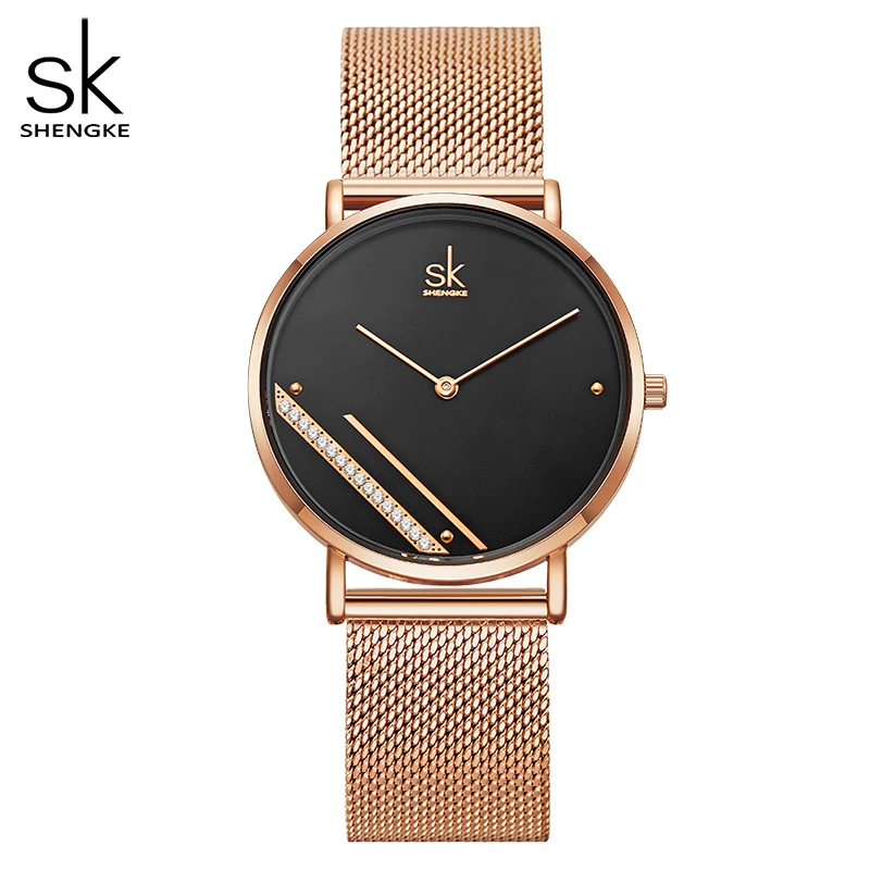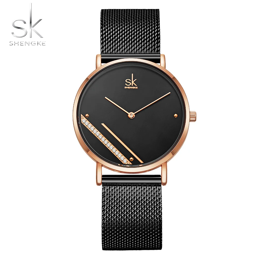 Часы наручные Shengke женские кварцевые, роскошные модные простые, с кристаллическим циферблатом