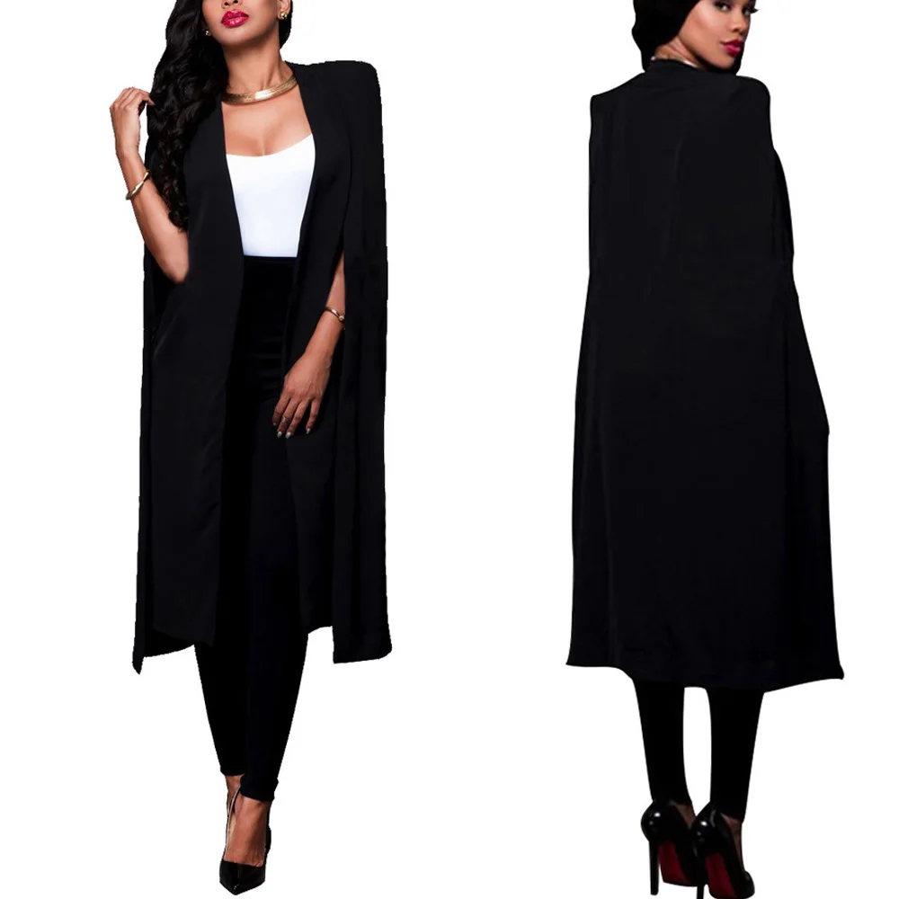 Модный Блейзер накидка пальто однотонный плащ женская верхняя одежда длинная куртка костюм размера плюс
