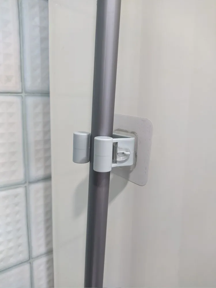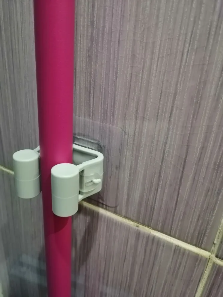Прилепила. пока держаться. А там посмотрим. Сама защелка удобная для разных швабр по диаметру.
