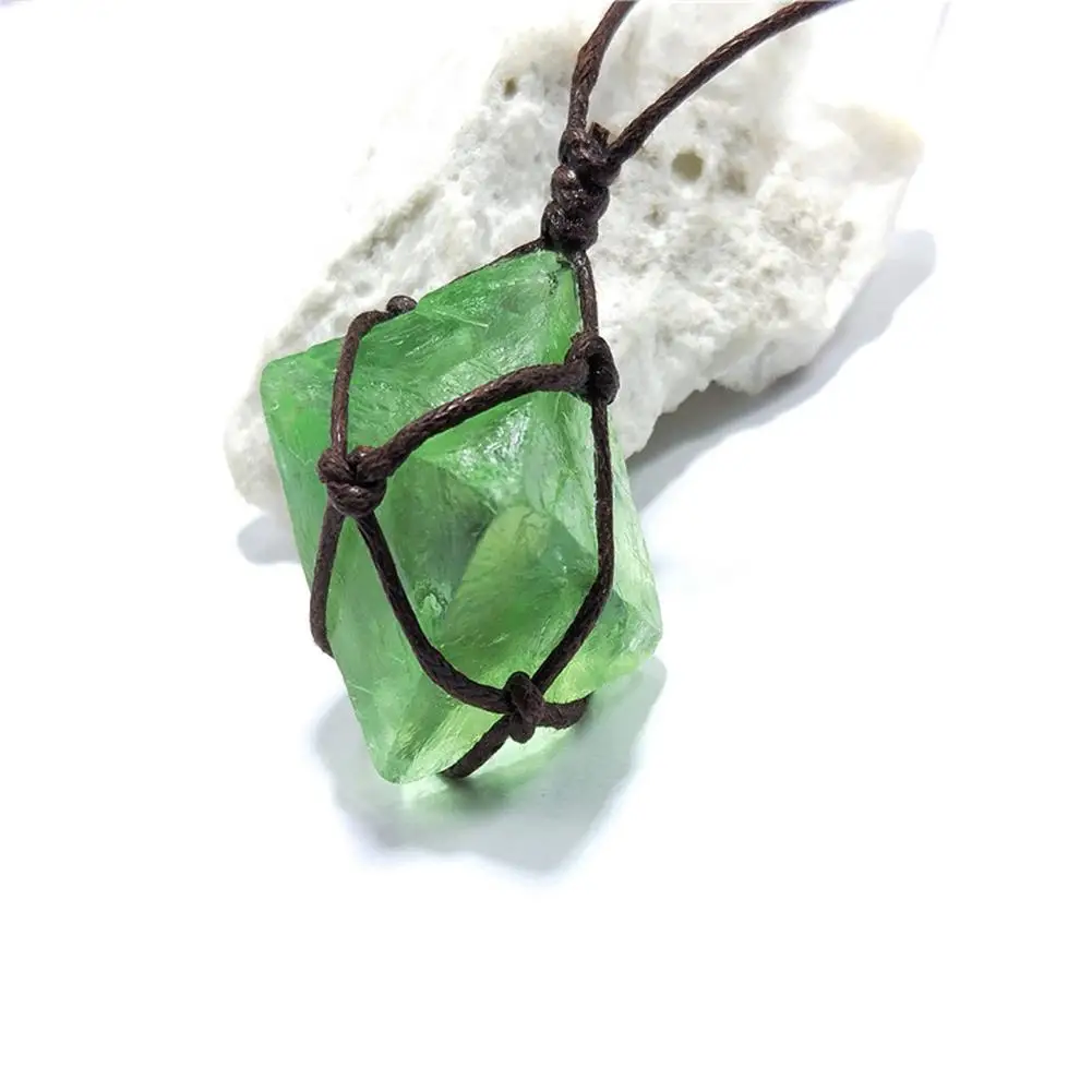 Натуральный изумруд кристалл кулон ИСЦЕЛЕНИЕ DT драгоценный камень жезл для рейки зеленый флюорит обертывание оплетка ожерелье Йога макраме для мужчин женщин