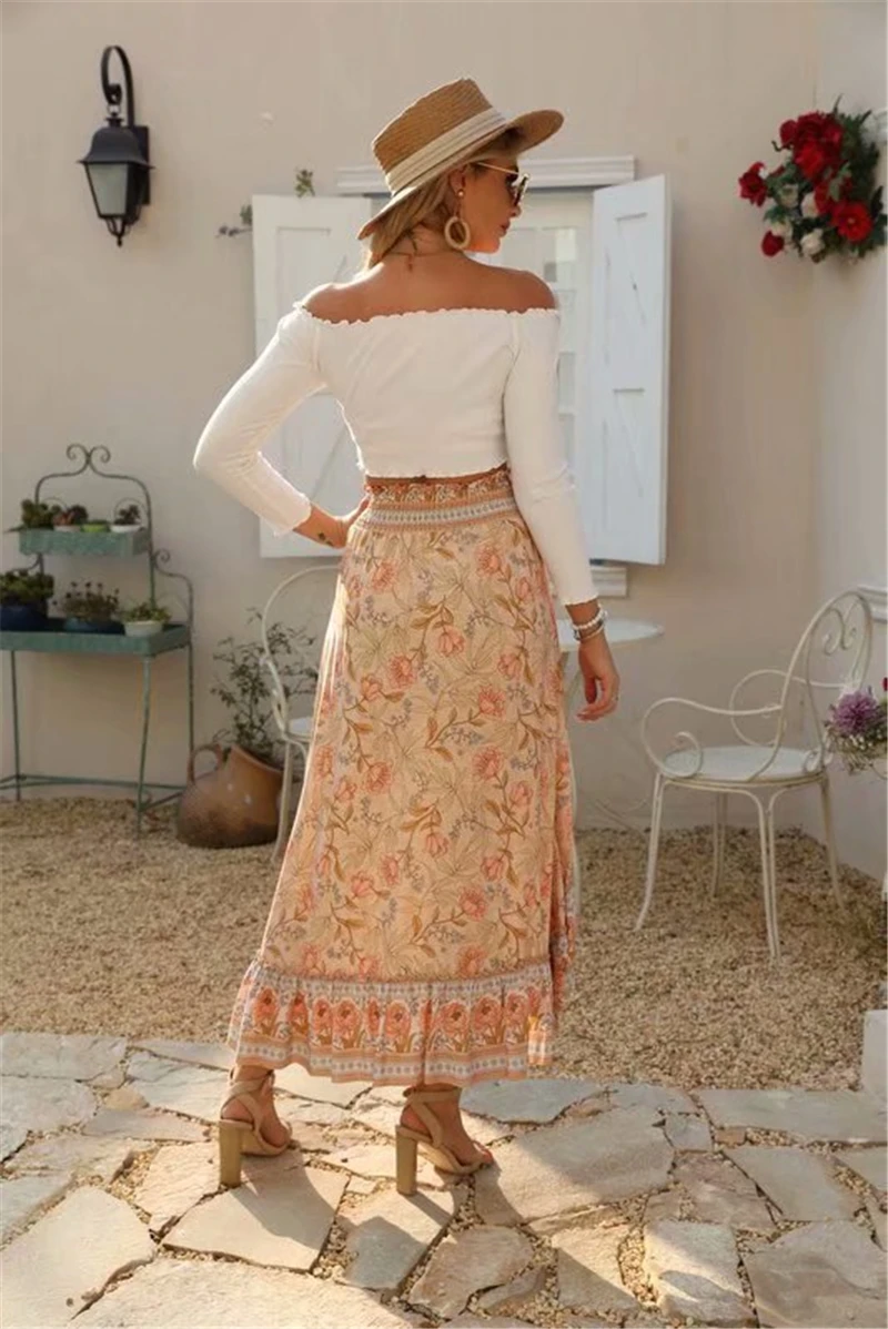 Винтажная шикарная Женская юбка в стиле хиппи с цветочным принтом и...