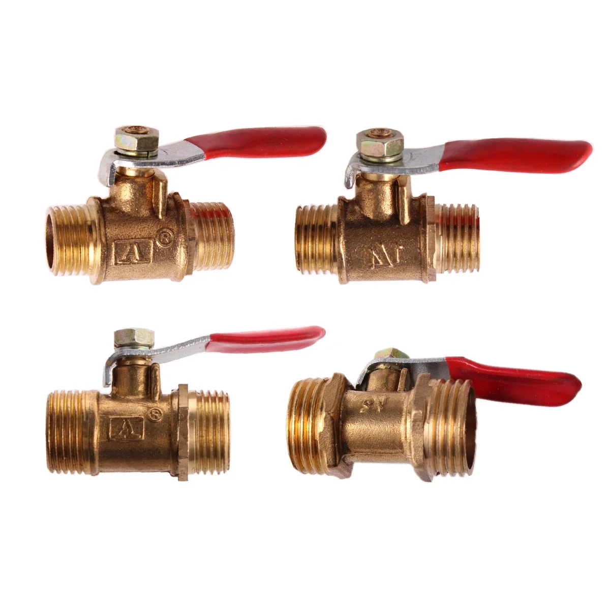 Латунный шаровой кран 18 "14" 38 "12" Папа-папа с резьбой BSP, красный рычаг, соединитель ручки, Соединительный фитинг, переходник для труб