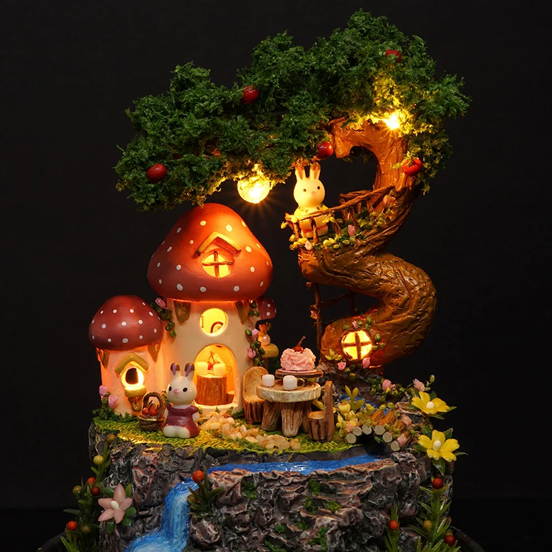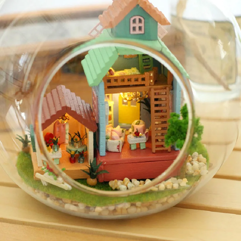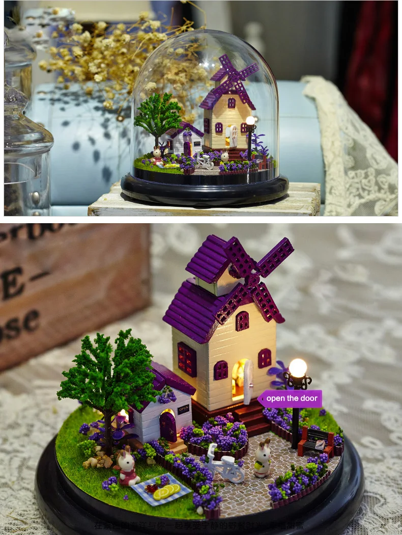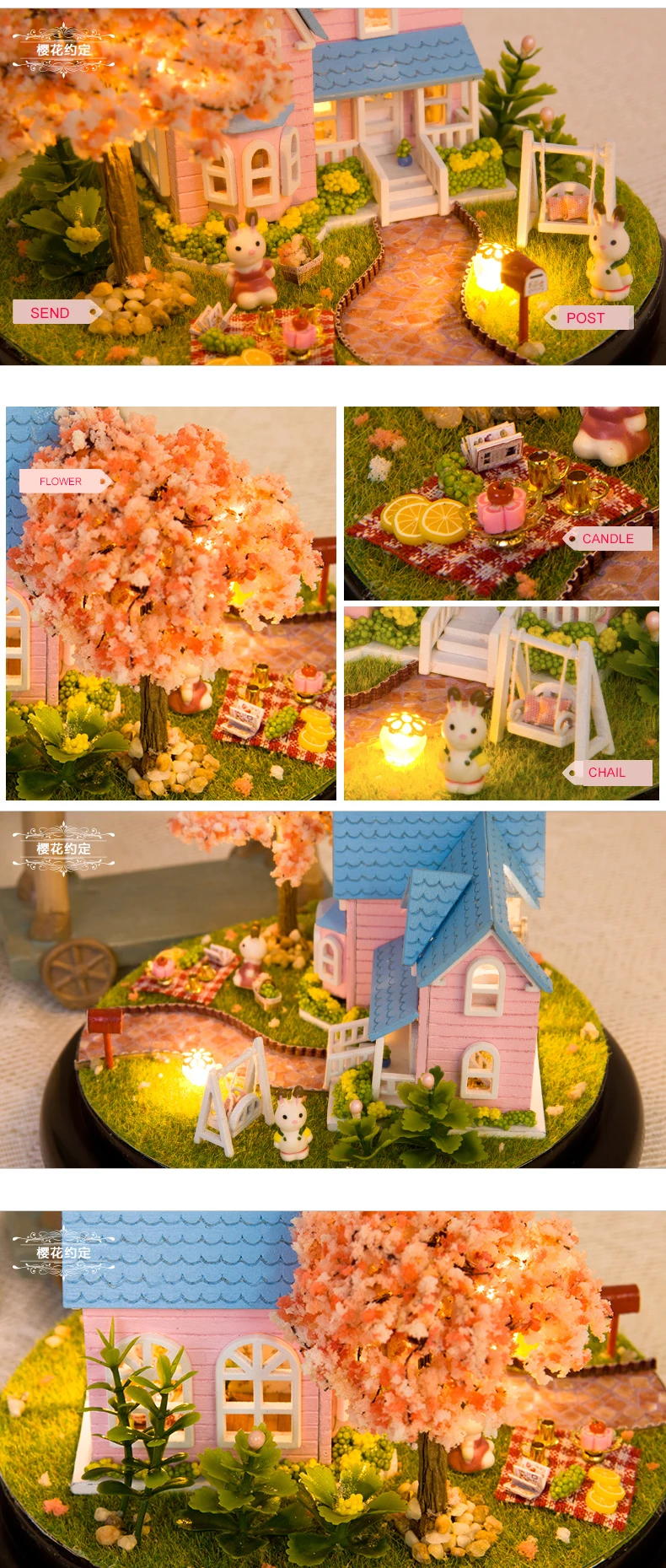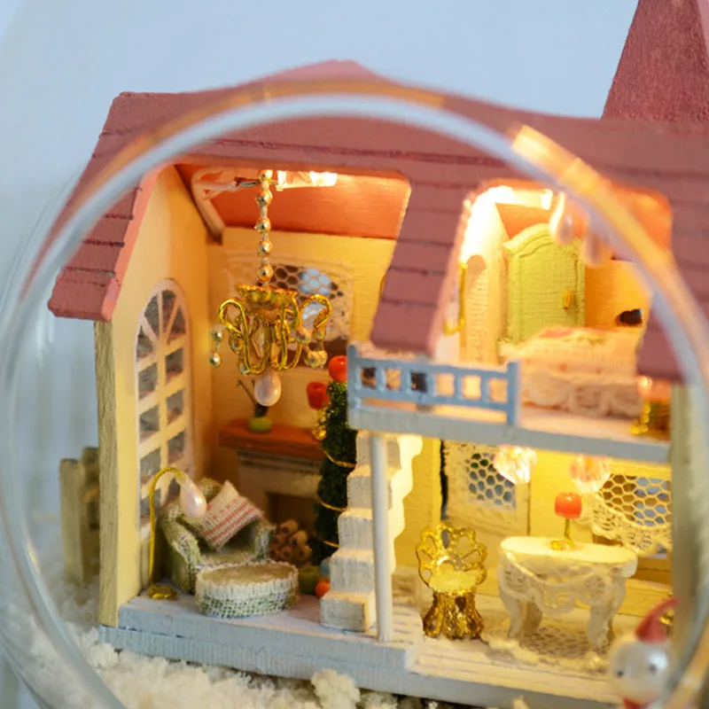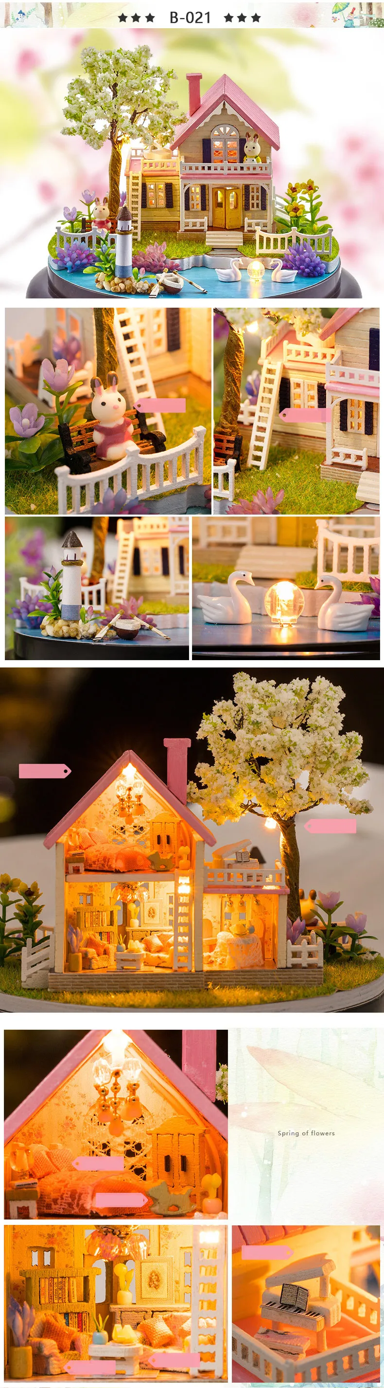 Кукольный домик для самостоятельной сборки, деревянный миниатюрный кукольный домик, миниатюрные игрушки с мебелью, светодиодные фонарики, подарок на день рождения B016