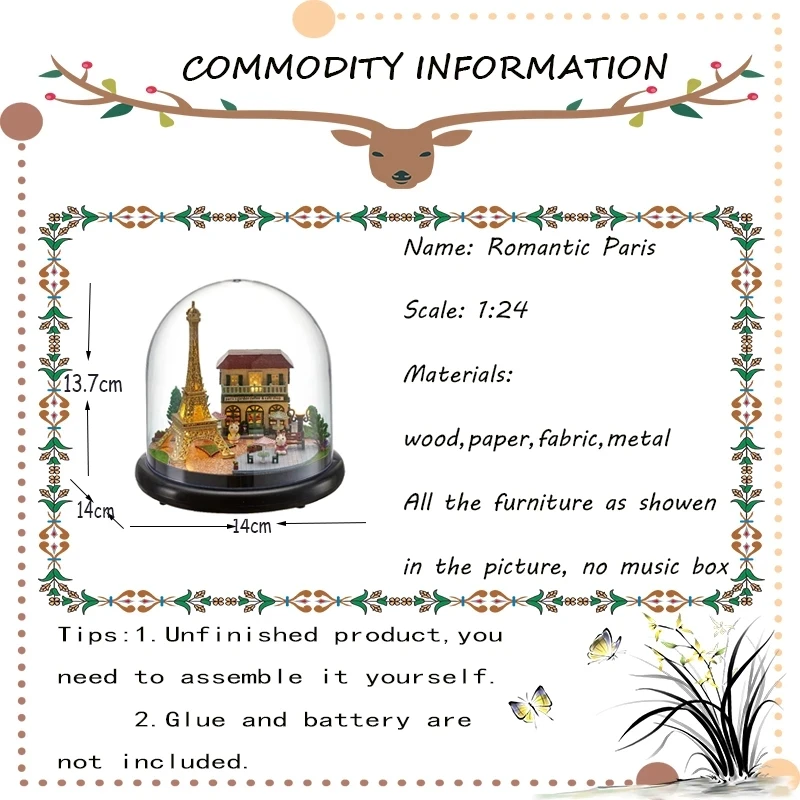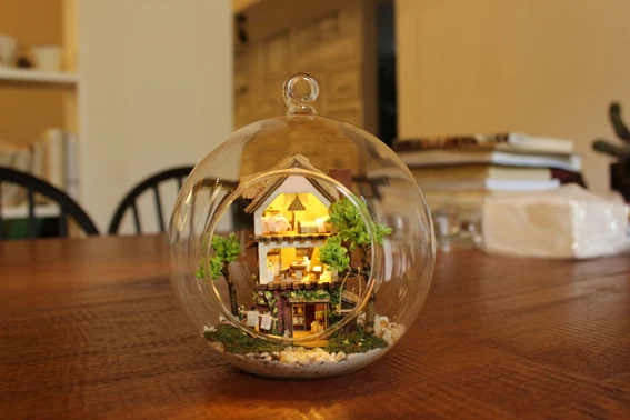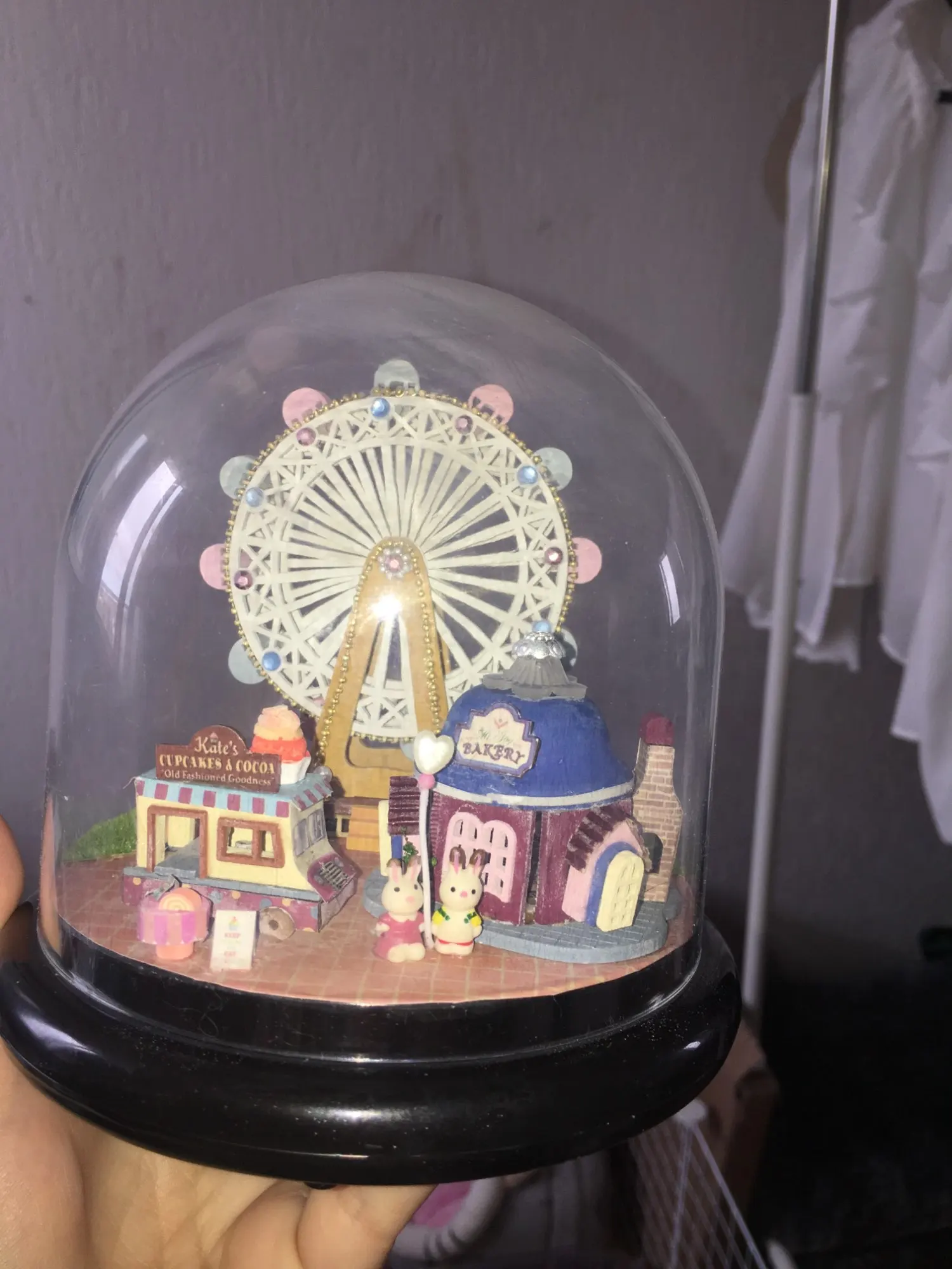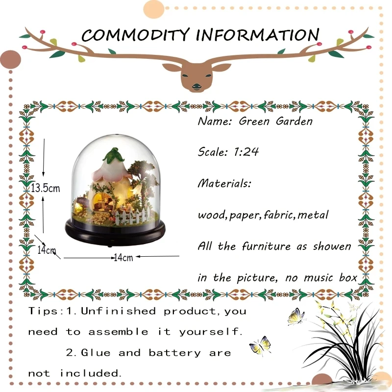 Этот дизайн очень маленький. Я ожидал, что размер будет похож на тот, который показан на основных фотографиях. Смотрите в подробном описании. Я пропустили измерения, так что это моя вина. Коробка была очень раздавлена, как показано на фотографиях. Купол не был сломан, так как он был покрыт пеной. Все детали маленькие, поэтому они не были достаточно большими, чтобы сломать. Это мило. Быстро собрать вместе. Мне нравится, но я хочу получить больше, чтобы соответствовать другим домам.