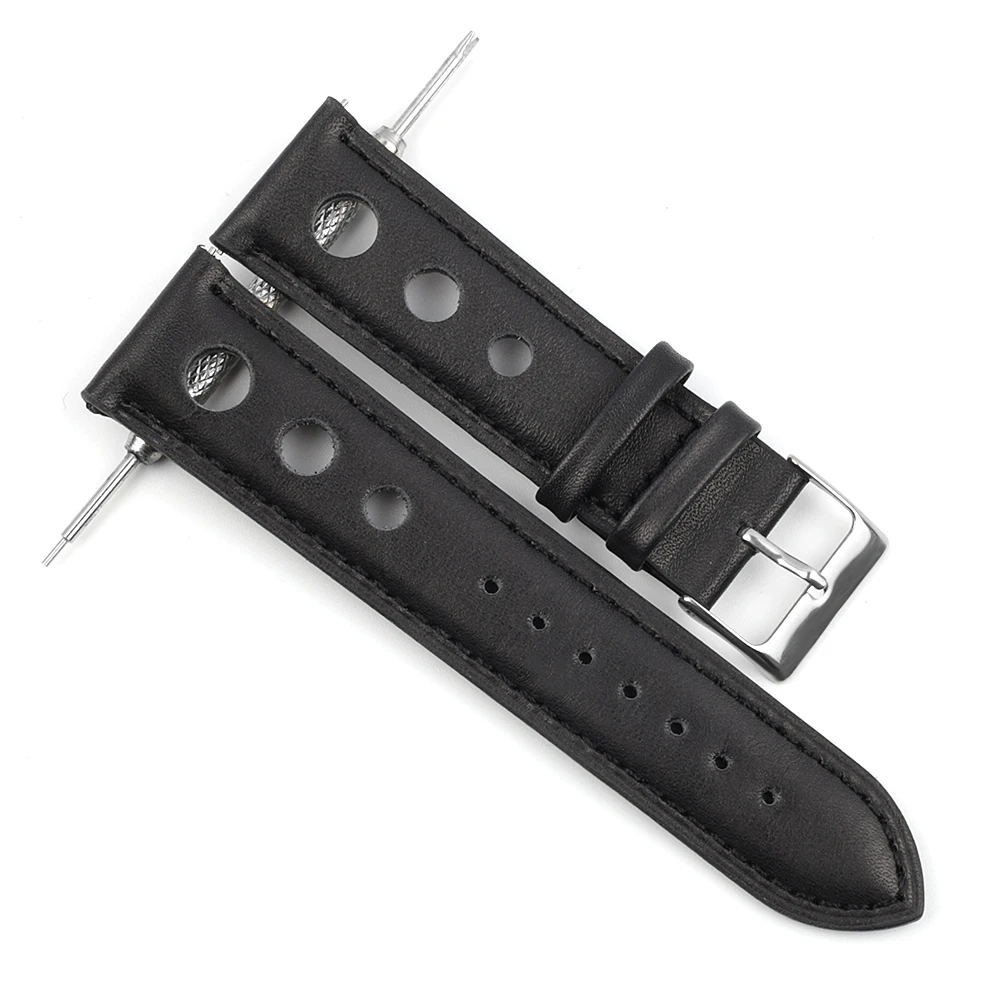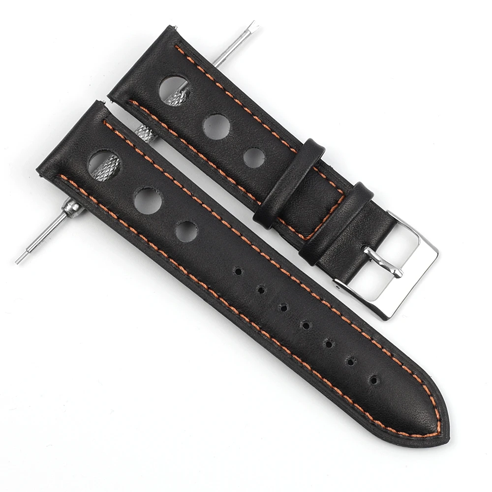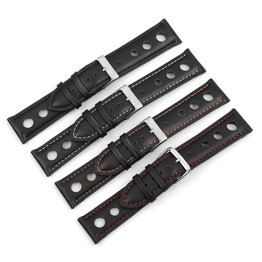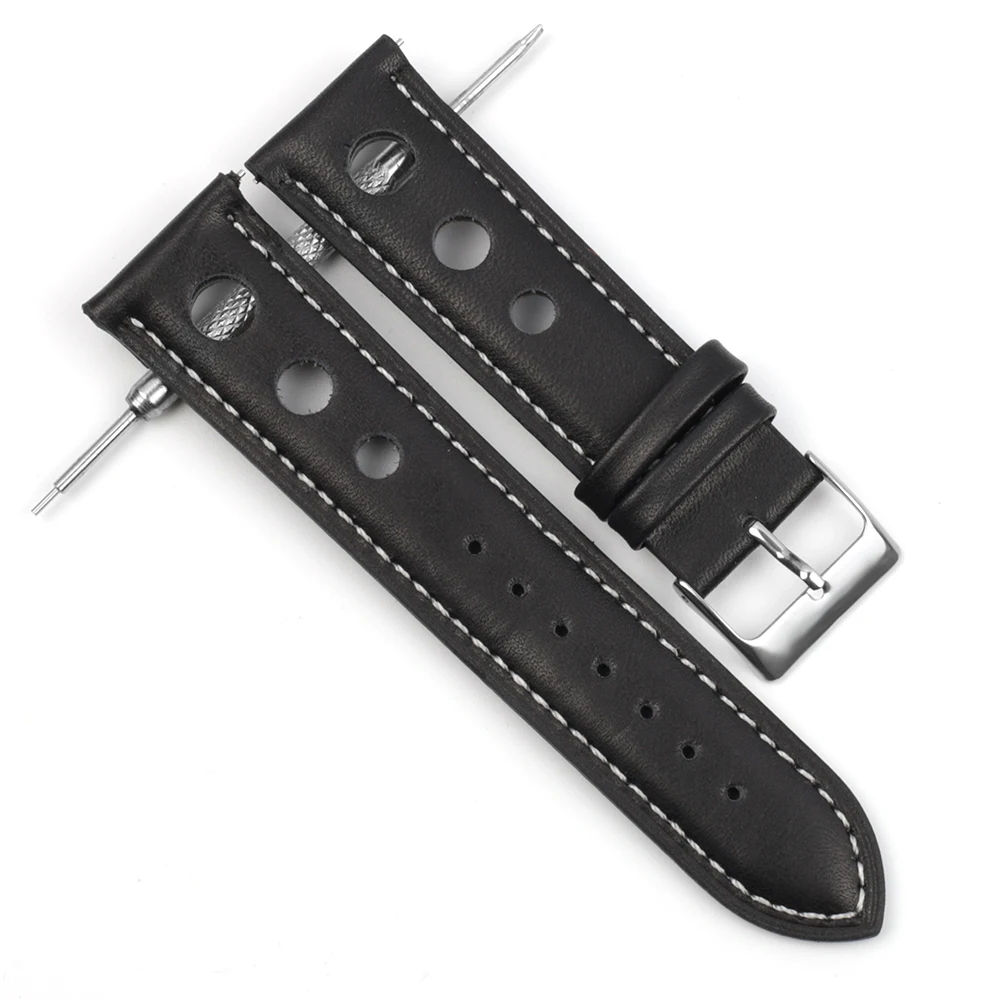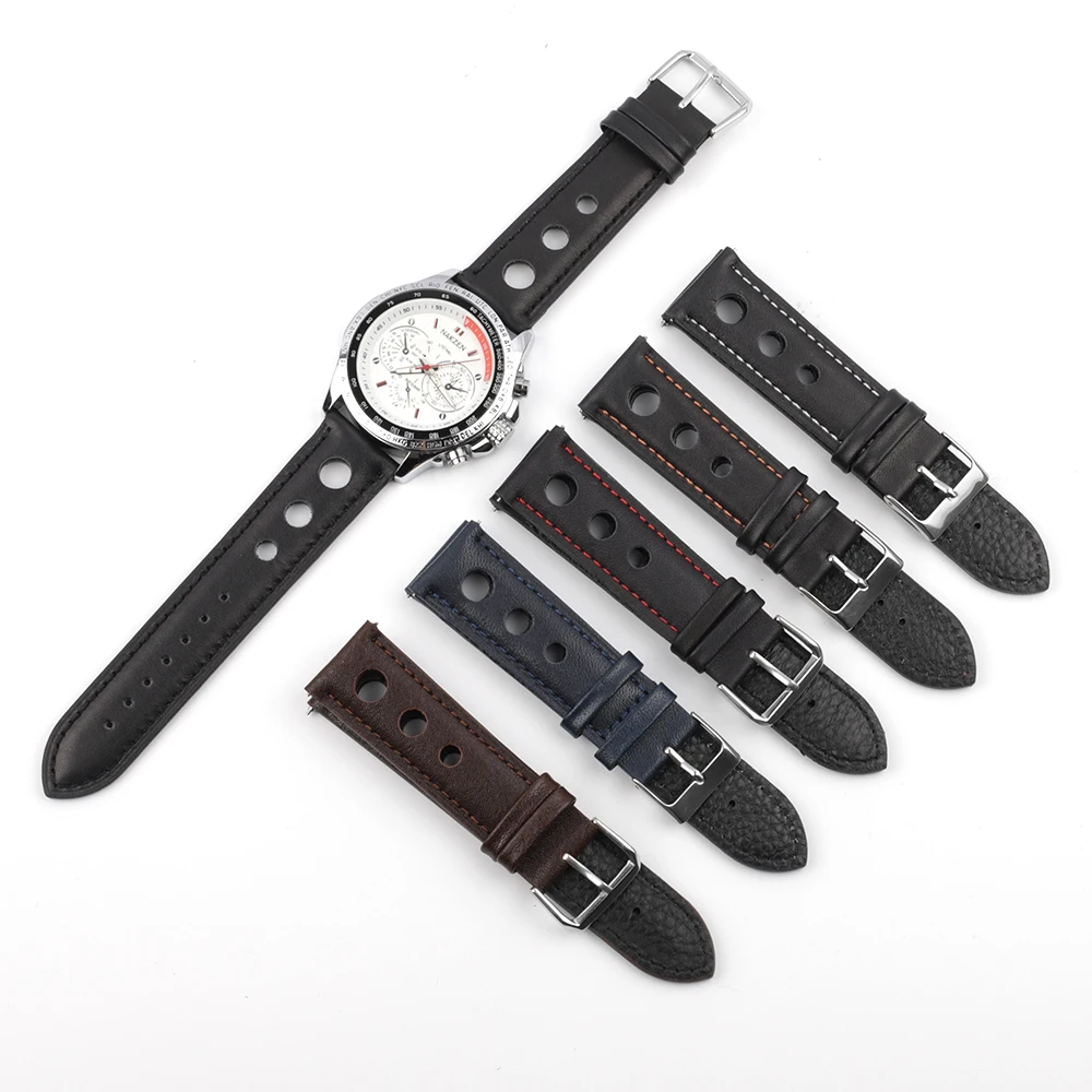 Ремешок для часов Onthelevel, из натуральной кожи, дышащий, черный, 18202224 мм