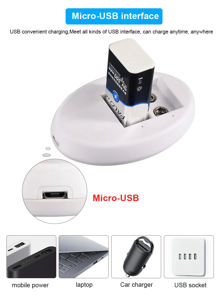 Зарядное устройство PALO 9 В для никель-металлогидридных, никель-металлогидридных аккумуляторов 6F22 9 В + 2 никель-металлогидридных аккумулятора 9 В для микрофона