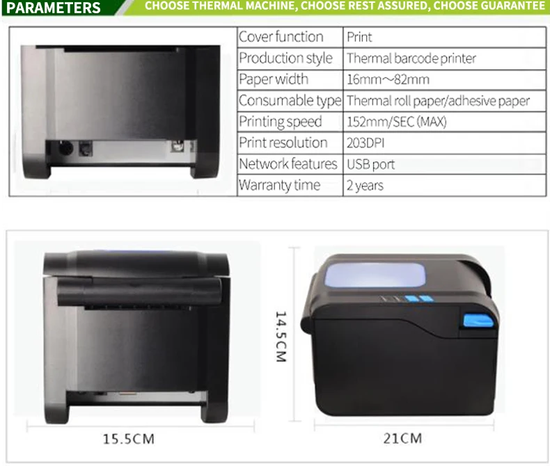 Термопринтер для этикеток Xprinter 80 мм, термопринтер для этикеток XP-370B, принтер для наклеек 20-80 мм, Bluetooth-принтер, бесплатная гарантия 2 года