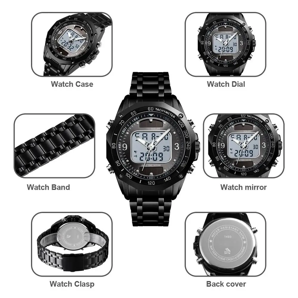 Часы наручные мужские кварцевые с солнечной батареей, люксовые брендовые модные водонепроницаемые аналоговые цифровые, с двойным дисплеем