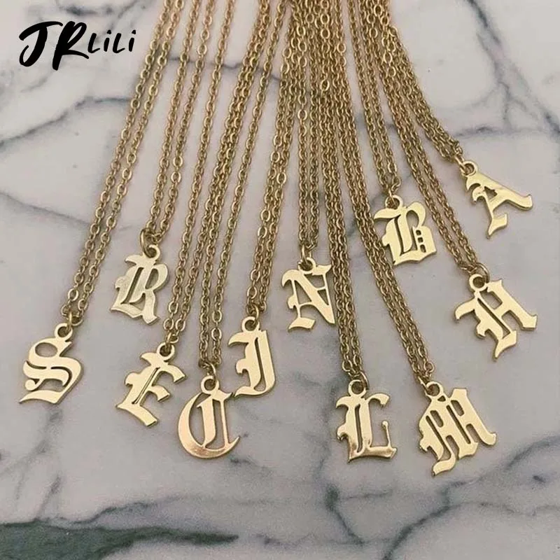 Винтажное ожерелье с инициалом для женщин, Золотая нержавеющая сталь, старинная английская буква, ожерелье с цепочкой, чокер ювелирные изделия, подарок на день Святого Валентина