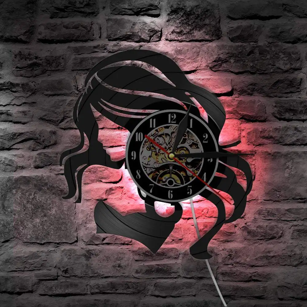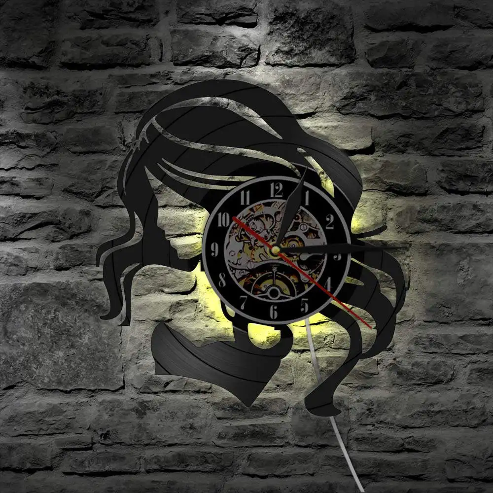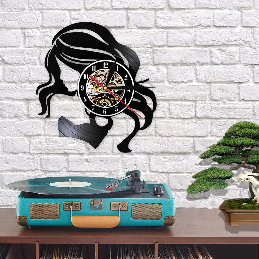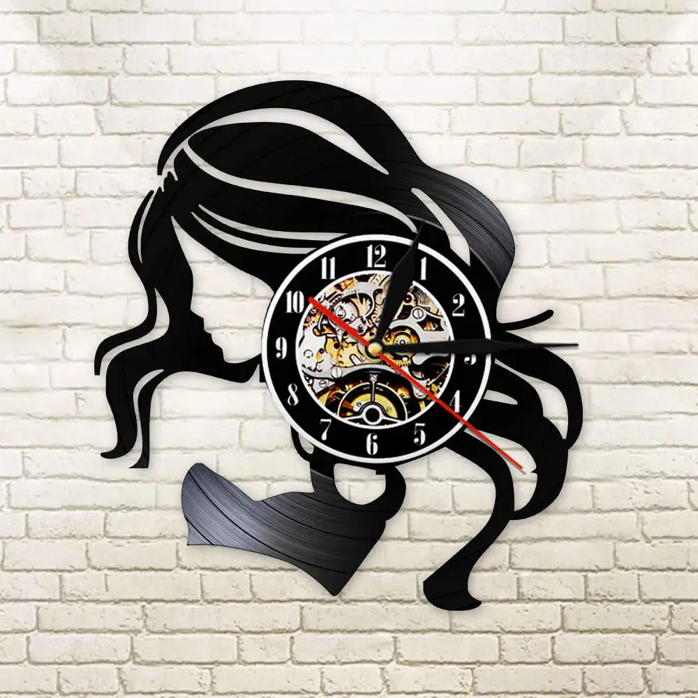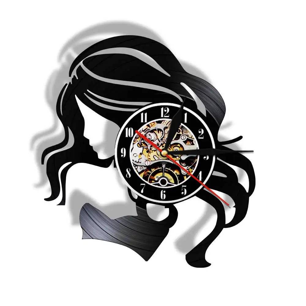 Модные настенные часы с записью салонный винил для волос, для девушек, красоты, современные дизайнерские часы, настенные часы для парикмахерской, парикмахера, стилиста, подарок