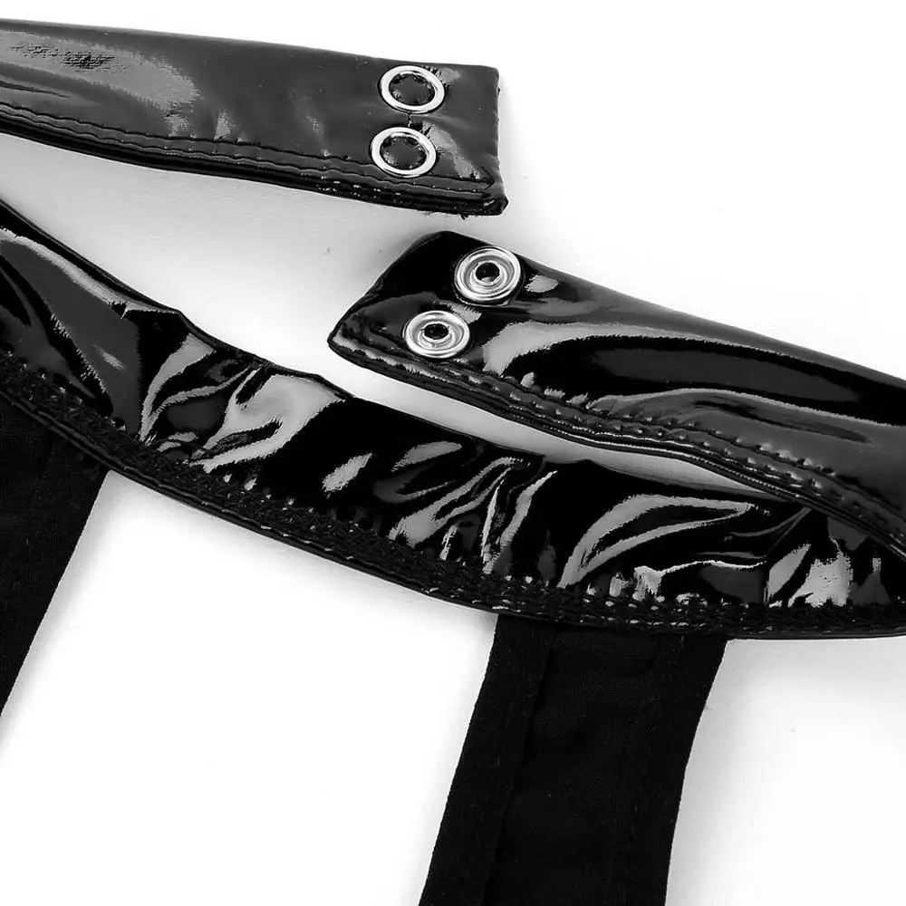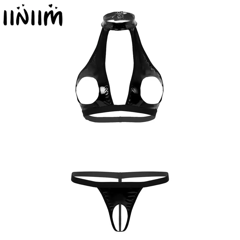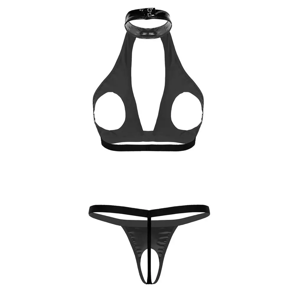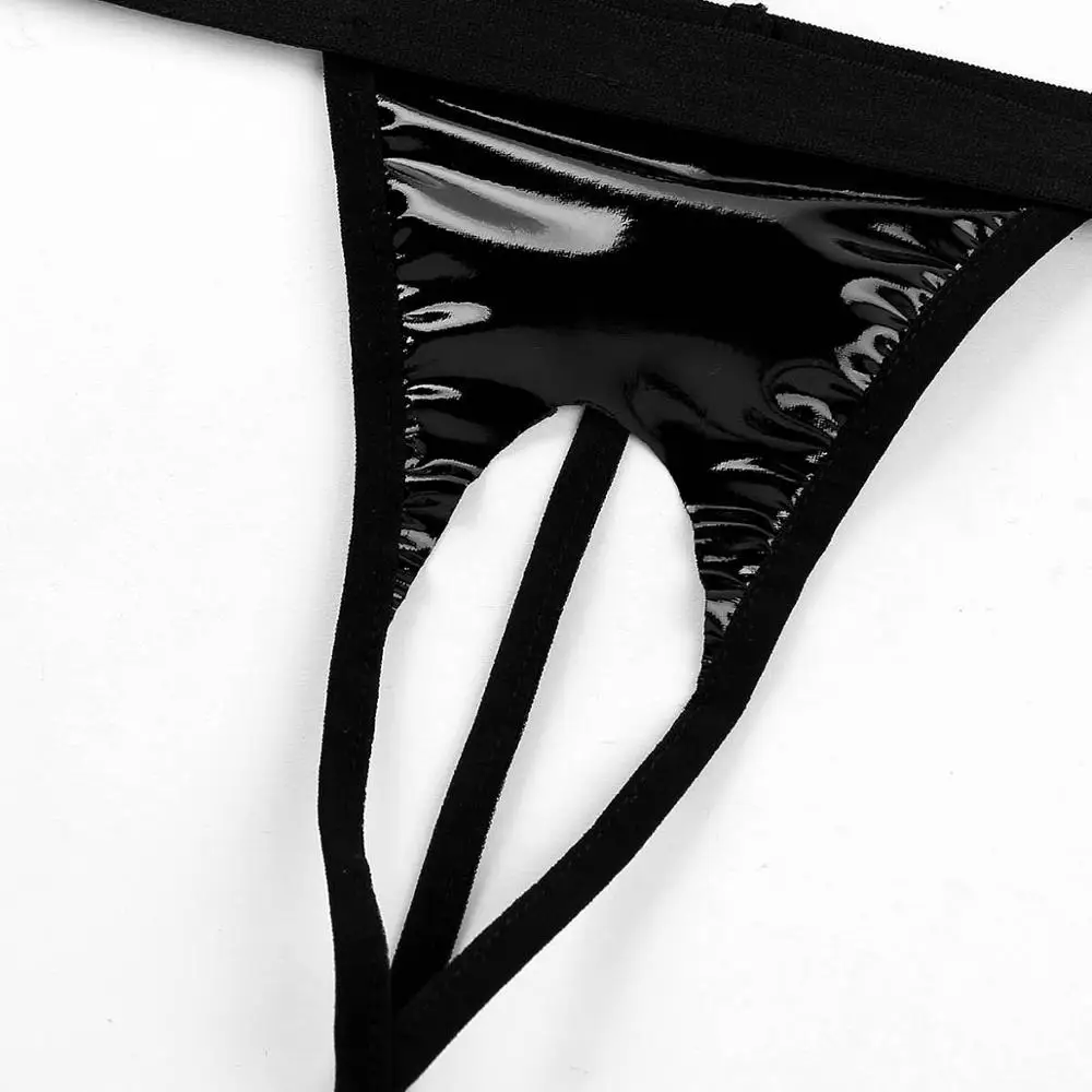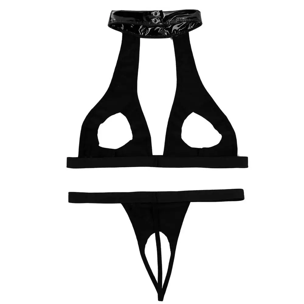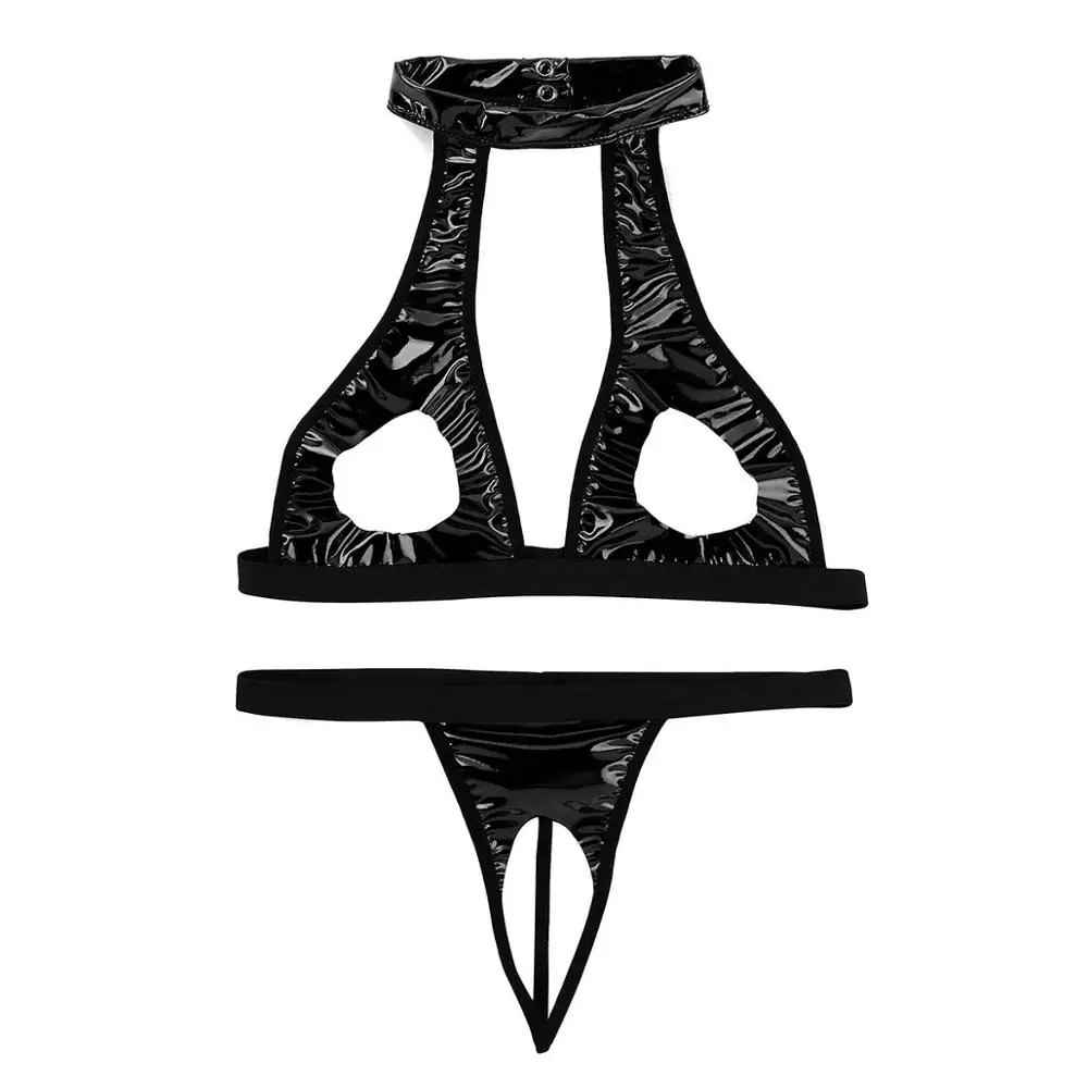 Особенности:Комплект женского нижнего белья из искусственной кожи wetlook, 2 шт., удобная и эластичная ткань.Бюстгальтер с лямкой на шее и вырезами, сочетается с трусами-стрингами без выреза.Уникальный дизайн подчеркивает ваши края и изгибы, делает вас более привлекательной и очаровательной.Идеально подходит для Дня Святого Валентина, медового месяца, элегантный внешний вид сделает вас более привлекательной для вашего партнера.Пожалуйста, внимательно проверьте размер перед покупкой, рекомендуется ручная стирка.