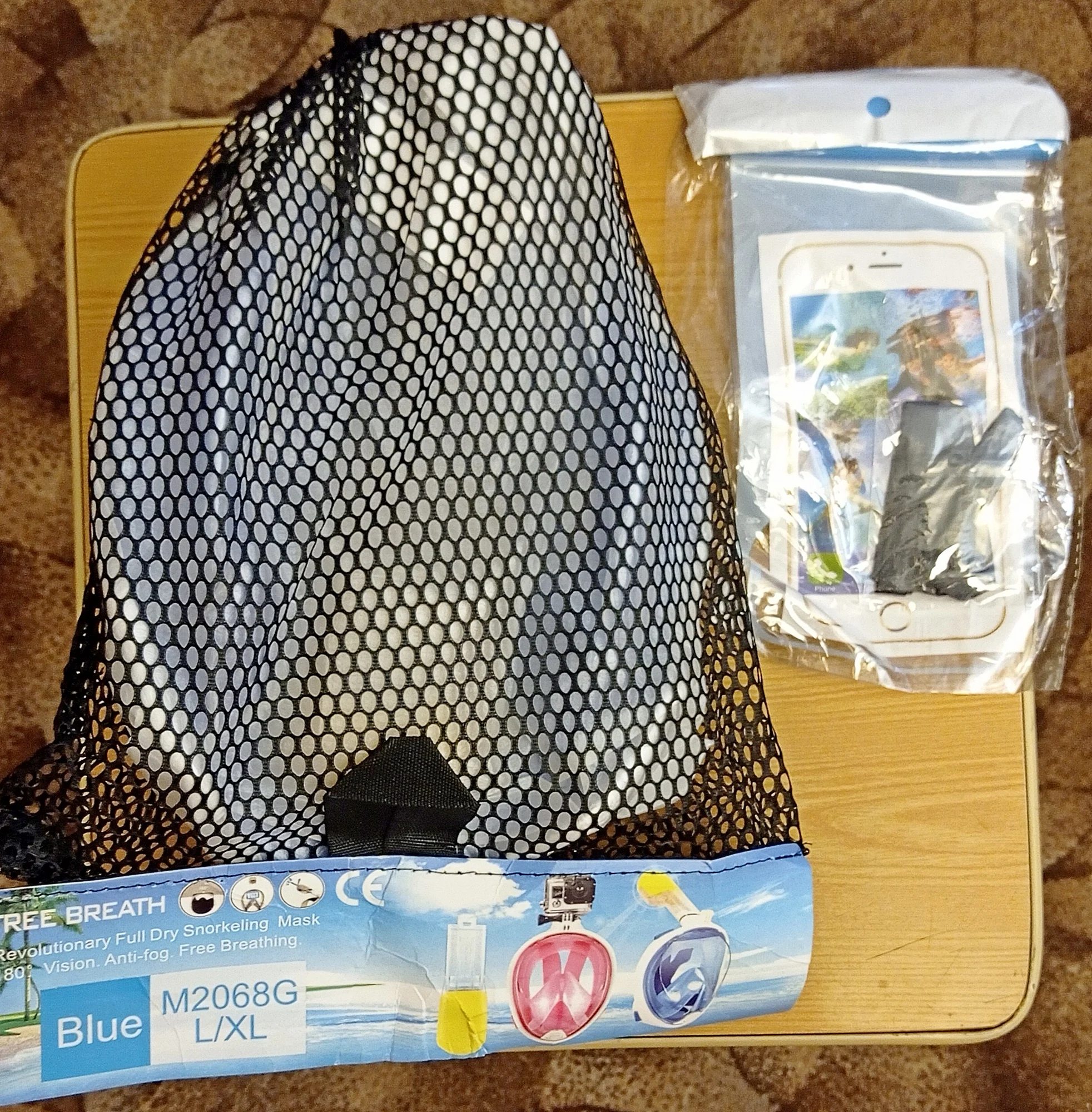 Маска хорошая,продавец не обманщик,только доставка в моем случае очень долгая.Чехол для подводной съёмки положили,неплохой,а да маску перед использованием лучше помыть и проветрить аромат немного амбре.А так за эту цену надо брать.