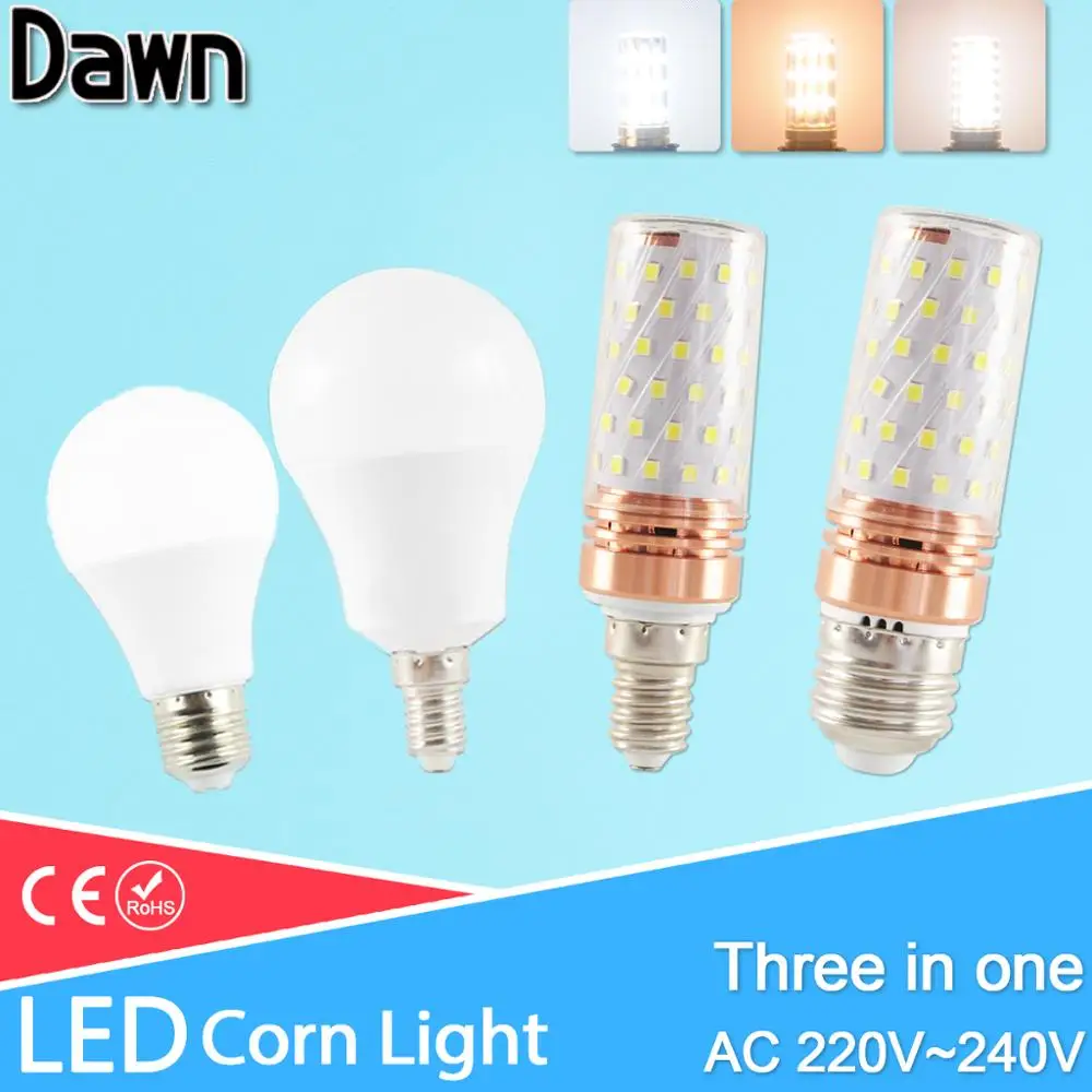 E27 Светодиодный светильник E14 Светодиодный светильник 3 Вт 6 Вт 9 Вт 12 Вт 16 Вт SMD2835 AC 220 В 240 В Светодиодная лампа-кукуруза лампада Bombilla ампул для украшения дома