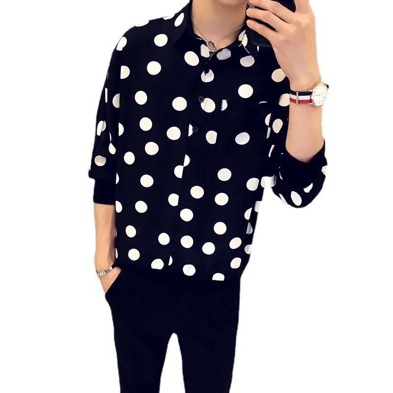 Новинка 2021, модная рубашка YASUGUOJI в английском стиле с принтом в горошек, мужская летняя рубашка с рукавами-фонариками, роскошные свободные мужские рубашки