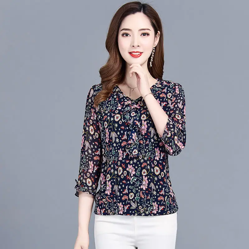 Женская шифоновая блузка, Повседневная Блузка с полурукавами и бантом, весна-лето, DF2651, женские блузки рубашки